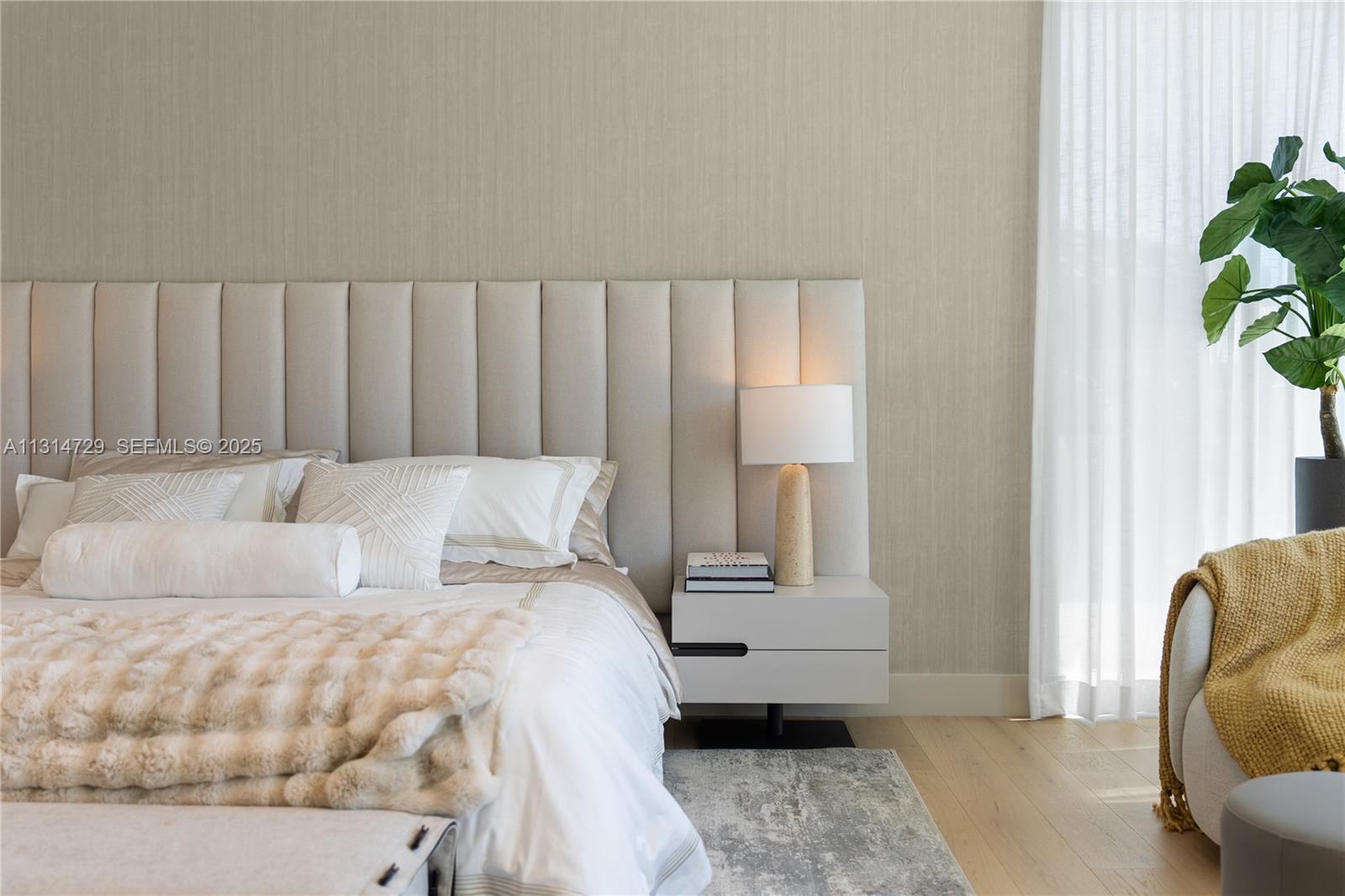 NEW BUILD ORGANIC MODERN WATERFRONT ESTATE IN THE HEART OF EASTERN SHORES! Modern Tropical Oasis in Light Natural Wood Encompassing 5 Bedrooms + 5 Baths + Powder Room in 5,796 Interior SF on 8,800 SF LOT with 80 FT of Waterfrontage. Enter into Open Floorplan with Calacatta Marble on Ground Floor. Enjoy Expansive Entertaining Spaces + Wine Cellar & Direct Water Views. Organic Wall Textures Throughout. Staircase Leads to Spacious Primary Suite Overlooking the Water. Custom Italian Kitchen Accented with Organic Light Wood with Oversized Island Countertop. Primary Bath with Hansgrohe & Duravit Fixtures + Rainshower. Deck Perfect for Entertaining with Heated Pool & Summer Kitchen. Minutes Away from Sunny Isles Beach, Aventura Mall, Dining & Oleta River State Park. Delivers Q2 of 2025.