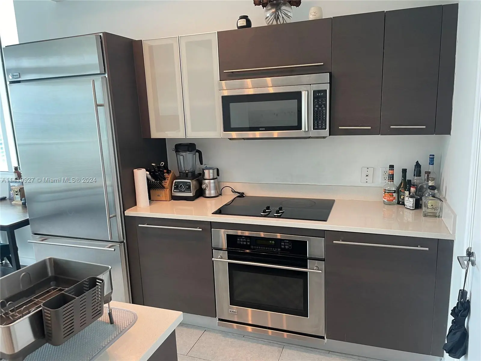 Penthouse Corner Unit, Panoramic City, River and Bay views. Higher ceilings. Hardwood floors. Kitchen with quartz counter-tops & stainless steel appliances. Double vanities with marble tops and jacuzzi in master bathroom, glass enclosed showers. Beautiful amenities include 3 pools, spa & gym, club room, sports bar, roof top entertainment room, wine cellar, theater room. Steps away from City Center, Mary Brickell Village, and Downtown.
