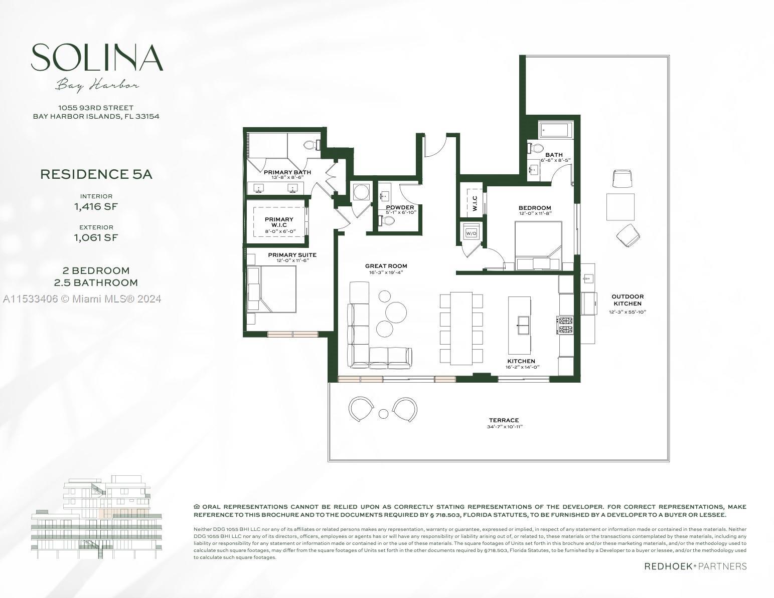 Solina is a boutique new development in Bay Harbor Islands, FL, comprising 7 residences and 2 penthouses emphasizing privacy, expansive interior space, private balconies and luxury island living. Residence 5A is fully finished with two bedrooms, two bathrooms and a powder room. Enjoy a unique and oversized wrap-around terrace with over 1,061 sf of exterior living. This is the only unit on the amenity level that feels like an extension of the unit. High end finishes in each unit include gourmet kitchens with premium Bosch appliances, travertine backsplashes and white quartz countertops. The building includes a rooftop pool, private storage, two parking spaces per residence. Bay Harbor Islands offers serene parks, bay access, world-class dining, shopping, and a strong educational system.