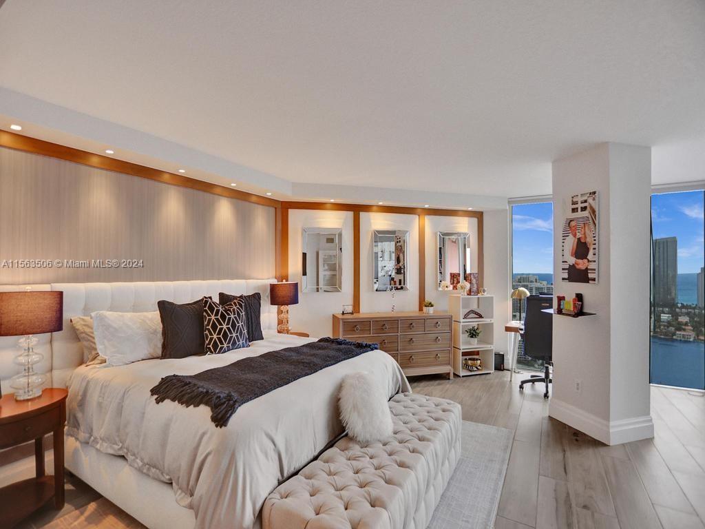 Enter upper PENTHOUSE through private elevator foyer from this Breathtaking Palace in the sky. This Penthouse spans the entire 38th floor w/ 4,080SF of living space & an excess of 1,500SF of balcony space. This residence has panoramic views from every room & features Ocean, Beach, Intracoastal waterway and city views as far as you can see. This spectacular newly renovated contemporary interior was designed by Steven G w/ no expense spared and furniture negotiable features high end finishes thru-out. You will also find an incredible OPEN new gourmet chef’s kitchen w/ Italian influences & 4 suites w/ all new state of the art baths. 5 Star amenities include: 2 story spa, pools, tennis courts, gym, private 65' marina, private park, valet-security, 3 covered parking spaces, & much more.