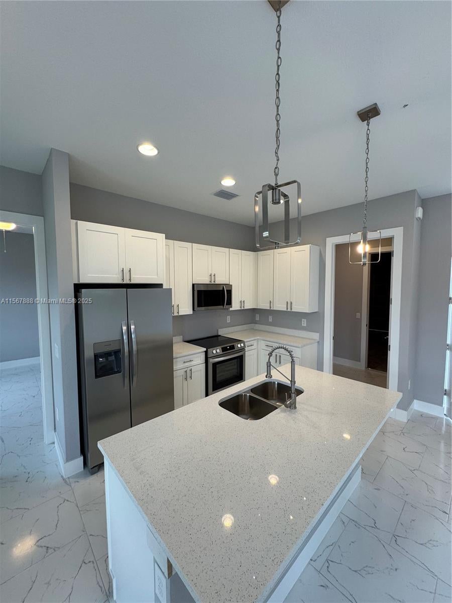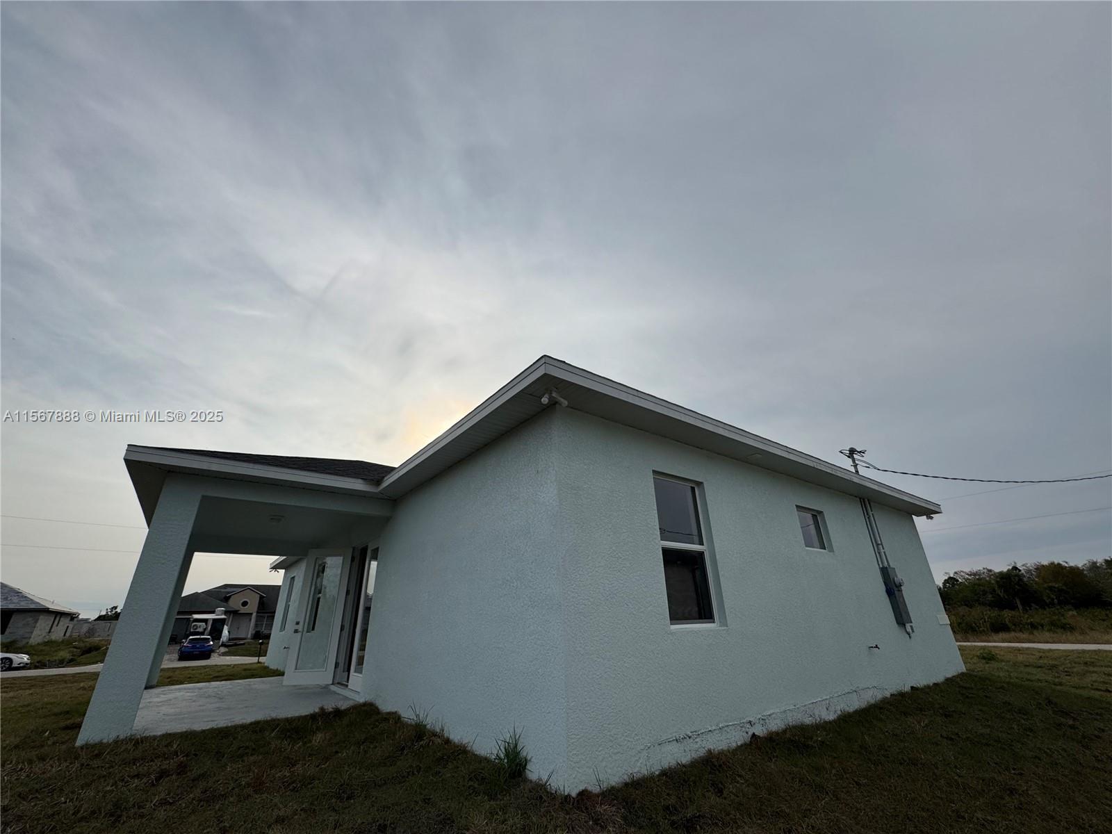 Spectacular brand new house! 1 story, single family home located in a great community in Lehigh Acres. Florida. Open concept floor plan with vaulted ceilings and spacious living room. 4 bedroom's 2 bathrooms and 2 car garage with a bay for an additional 4 cars. Bedrooms have large walk-in closets and primary bathroom has his and hers sinks and tiled shower. Granite counters in bathrooms and kitchen center island, soft close cabinets, and stainless steel energy efficient appliance package. Approximately 1,500 sq. ft. under air, over 2100 sq. ft. total. Covered terrace, great backyard, close to the Fort Myers International Airport, shopping malls. Will be ready in approximately 45 days. Seller offering $10k in incentives!
