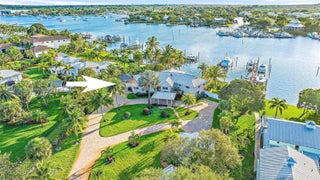 Boater and fisherman's dream, this waterfront paradise located in Rocky Point on the protected Manatee Pocket only minutes from the inlet and downtown Stuart. This 1.08 acre beautifully landscaped property, circular driveway, with 2/1 guest house and detached two car garage. Newer 6'x180' dock, with electric and water, will accommodate a large yacht plus two lifts, one 20,000 lb. lift and a 12,000 lb. lift. The remodeled main house 4 bedroom, 6 full baths home with water views from every room, features marble floors downstairs and wood floors upstairs. Gourmet kitchen with gas cooking, eat in bar, and dining area, on demand hot water heaters. Outside features pool with spa, surrounded by Old Chicago Brick, Tiki Hut with outdoor kitchen, new fenced yard and beach area by the water.