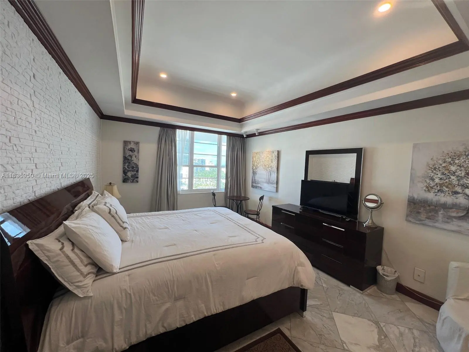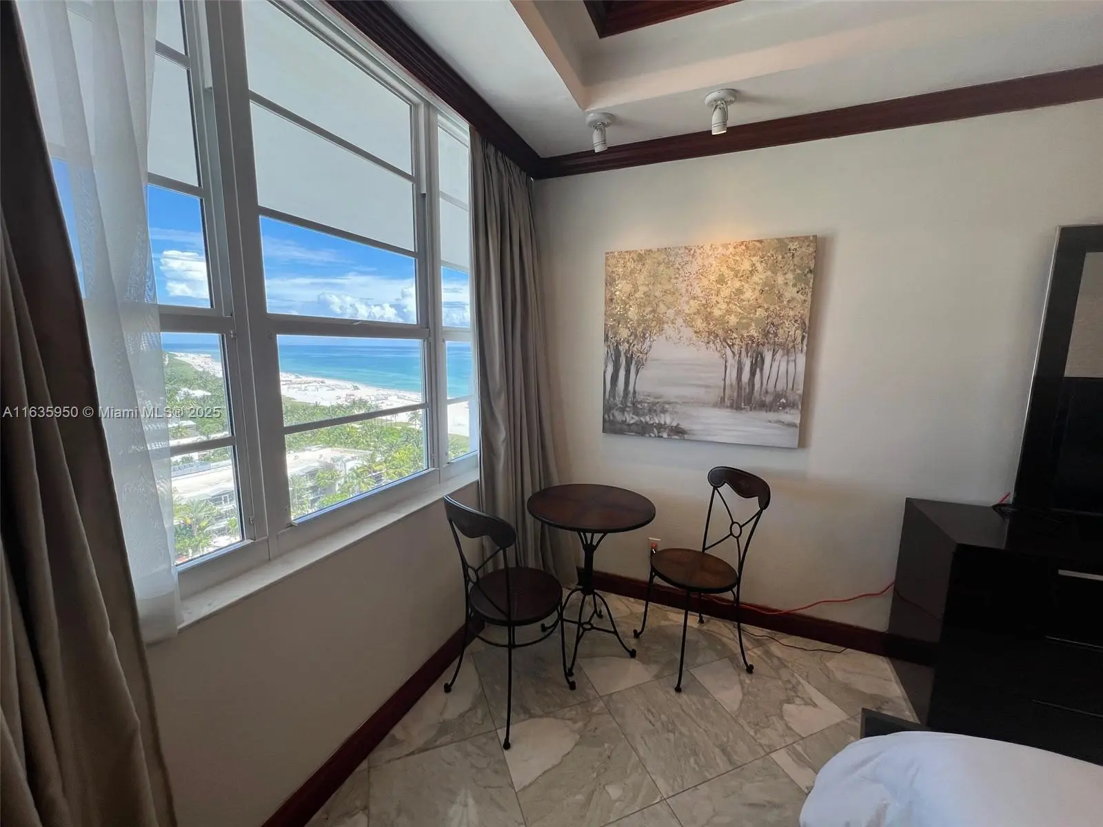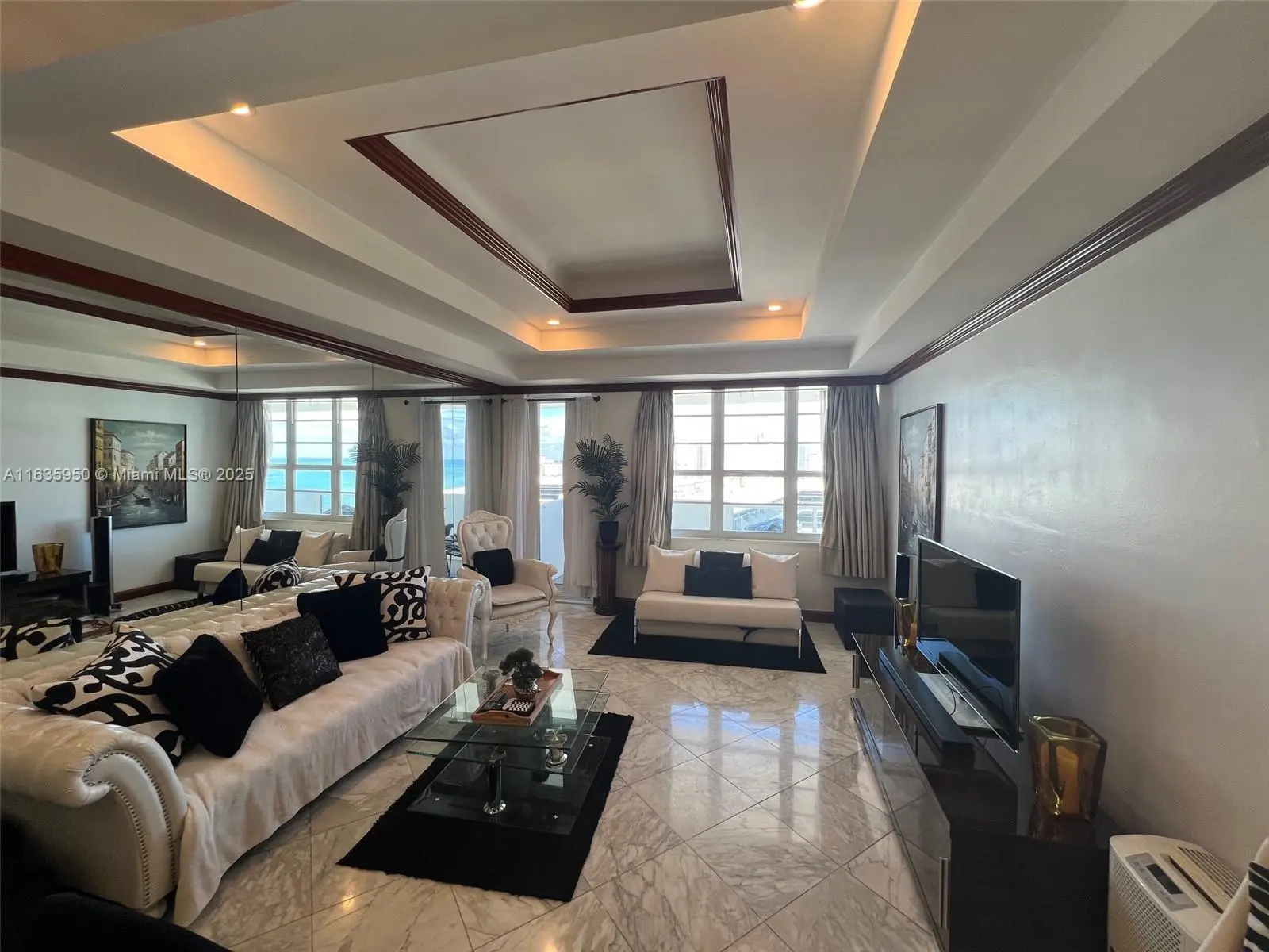 Direct Beach Access, ocean views from private balcony, high impact windows & doors. Fully furnished just bring your suitcase. This apartment has it all, remodeled, brand new A/C, high ceilings, marble floors throughout, granite counter tops, mahogany kitchen cabinets, stainless steel appliances, double door refrigerator, Swarovski crystals chandeliers, recessed lights, formal dining and living area, large bedroom with kingsize bed, walk-in closet, Jacuzzi. Second bath with marble shower. All utilities included in the rent, high speed internet for home office, digital cable, plus 1 valet parking. Best location, walk to chef's eateries, Lincoln Mall, entertainment, sanctuaries and more, just a short drive to Miami Int'l Airport. Fast online approval. Available March 5 2026 until December 2026. Also Month to month OK, minimum 30 days rental. Owner occupied, please call for an appointment for showings. Priced for Long term. Monthly price depends on the season.