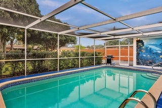 Single story house in quiet neighborhood of Hollywood Hills. 3BR 2 BTH. NEW central AC. Attractive open kitchen with beautiful custom cabinets, custom teak eating counter with matching wood seats for 6-8 people. Ceiling fans in all BR and bathrooms. Separate Dining Room. Spacious screened-in pool. Pool deck ideal for entertainment. One car garage. Laundry in garage. New Circular Driveway in Front of home. Extra Driveway accessible via back alley can accommodate 6 cars. Use Show Assist to request all showings. Perfect for Families. OPTION TO BUY FURNITURE. Home is currently used as Licensed AIRBNB.