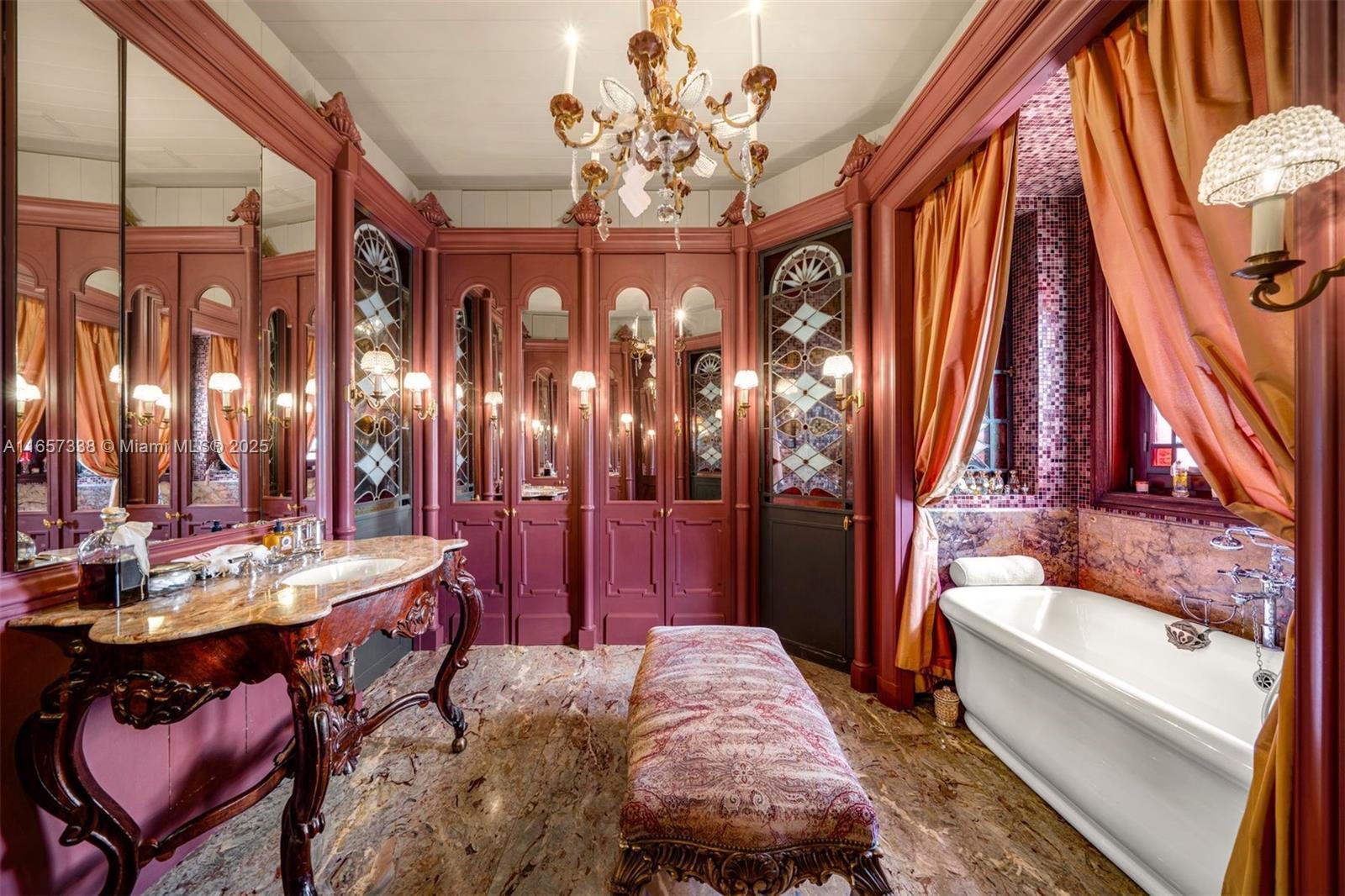 Welcome to an extraordinary European style waterfront estate, where luxury and elegance meet the tranquility of coastal living.This 3-story custom-built masterpiece boasts a spectacular social area with soaring high ceilings, creating an ambiance of grandeur and openness. This estate features 7 lavish bedrooms,7.5 opulent bathrooms, private office, cozy family room, extraordinary chef’s kitchen all designed with meticulous attention to detail and the finest finishes. Step into a world of breathtaking and captivating views, where every window frames the stunning panorama of the bay and the iconic Miami skyline. The outdoor living spaces invite you to enjoy serene and unforgettable sunsets. A sanctuary of sophistication and comfort with dock, garages, elevator, and an unparalleled lifestyle.