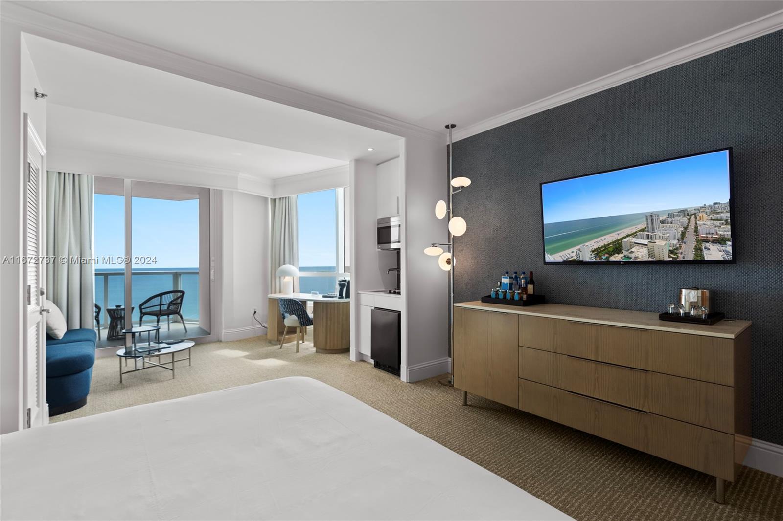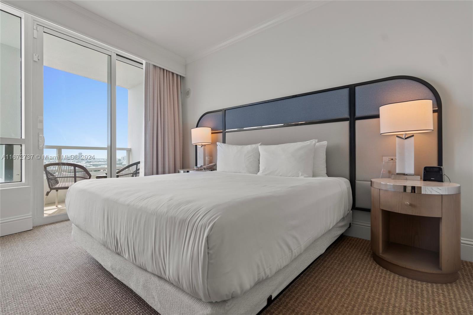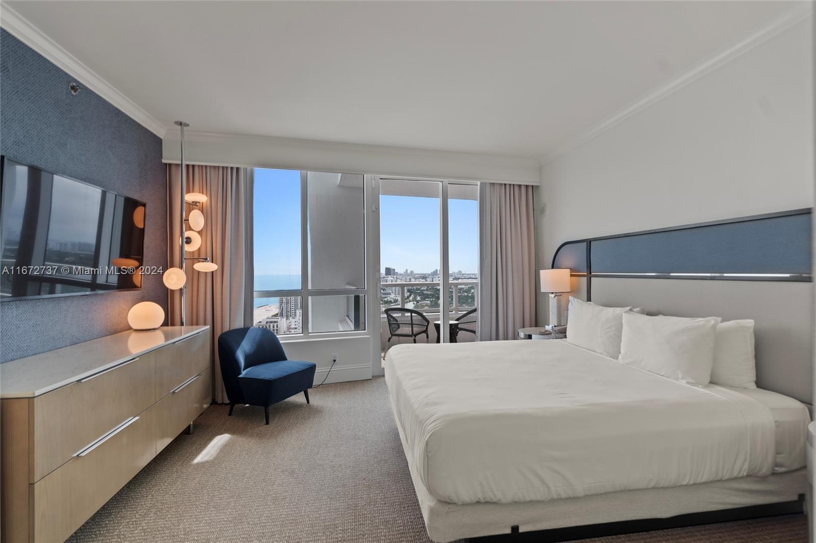 Rarely available, this 2BD/3BA unit at Fontainebleau II offers stunning, unobstructed views of the ocean, bay, and city. Fully furnished and turnkey, the unit features floor-to-ceiling windows, a full kitchen, 2 king beds, 2 sleeper sofas, 3 balconies, and in-unit washer/dryer. Enjoy resort-style living with full-service amenities. Option to enroll in hotel rental program & receive income while away! The Fontainebleau resort offers award-winning restaurants, LIV night club, Lapis spa & state-of-the-art fitness center, bakery, shops, full-service salon and more. Maintenance fees include all utilities: AC, internet, cable, local calls, electricity, valet + daily free breakfast in owner's lounge. Please click the virtual tour link to see a video of the property.
