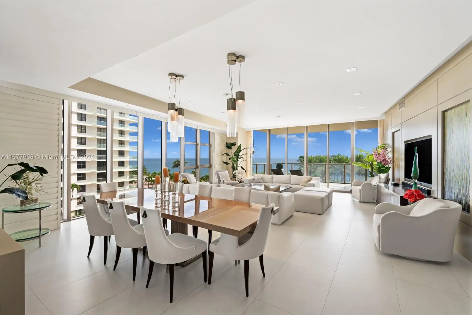 Welcome to Residence 501N, an exceptional corner flow-through unit in the prestigious St. Regis Bal Harbour, one of Miami's most coveted oceanfront addresses. This rarely available, turnkey-furnished home spans over 3,500 SF w/bespoke interiors by Steven G Interiors. With 3 bedrooms + den (4th bedroom) & 3.5 bathrooms in a split floor plan, this spacious sanctuary boasts stunning design & luxurious features. The chef's kitchen features Wolf, SubZero, & Miele appliances. The lavish primary suite offers a massive walk-in closet, wet bar, private sunrise terrace, & spa-like bathroom w/rainfall shower, dual sinks, & water closet w/bidet. Additional bedrooms are ensuite & generously sized. World-class amenities include 24-hour concierge, private beach service, pool, spa, fitness center, & more!