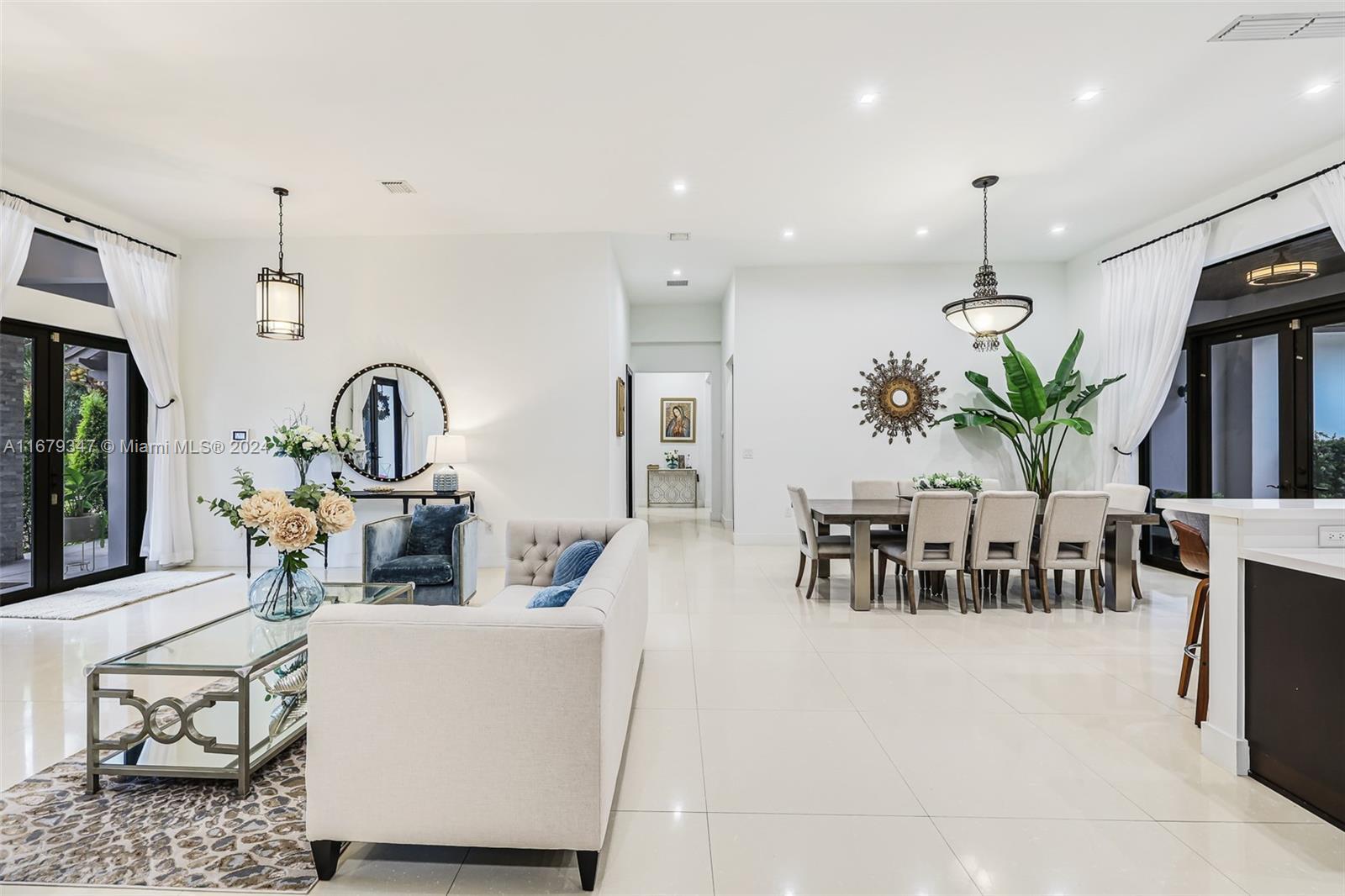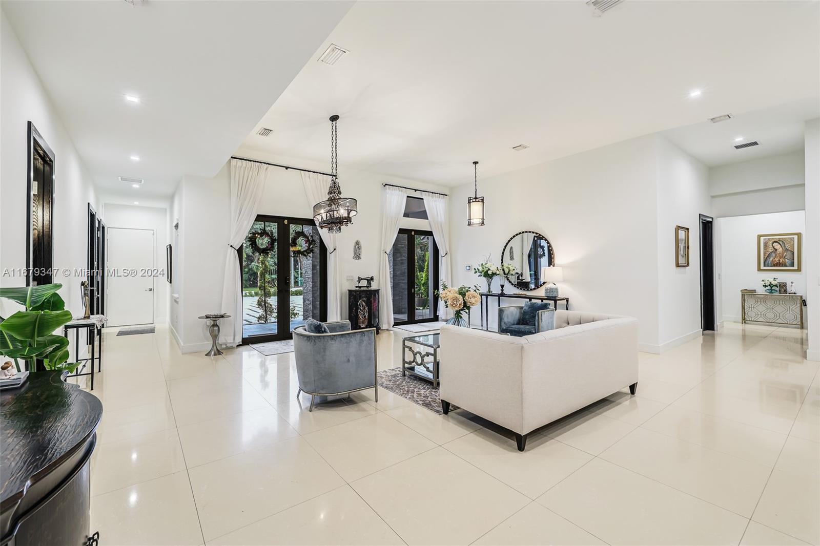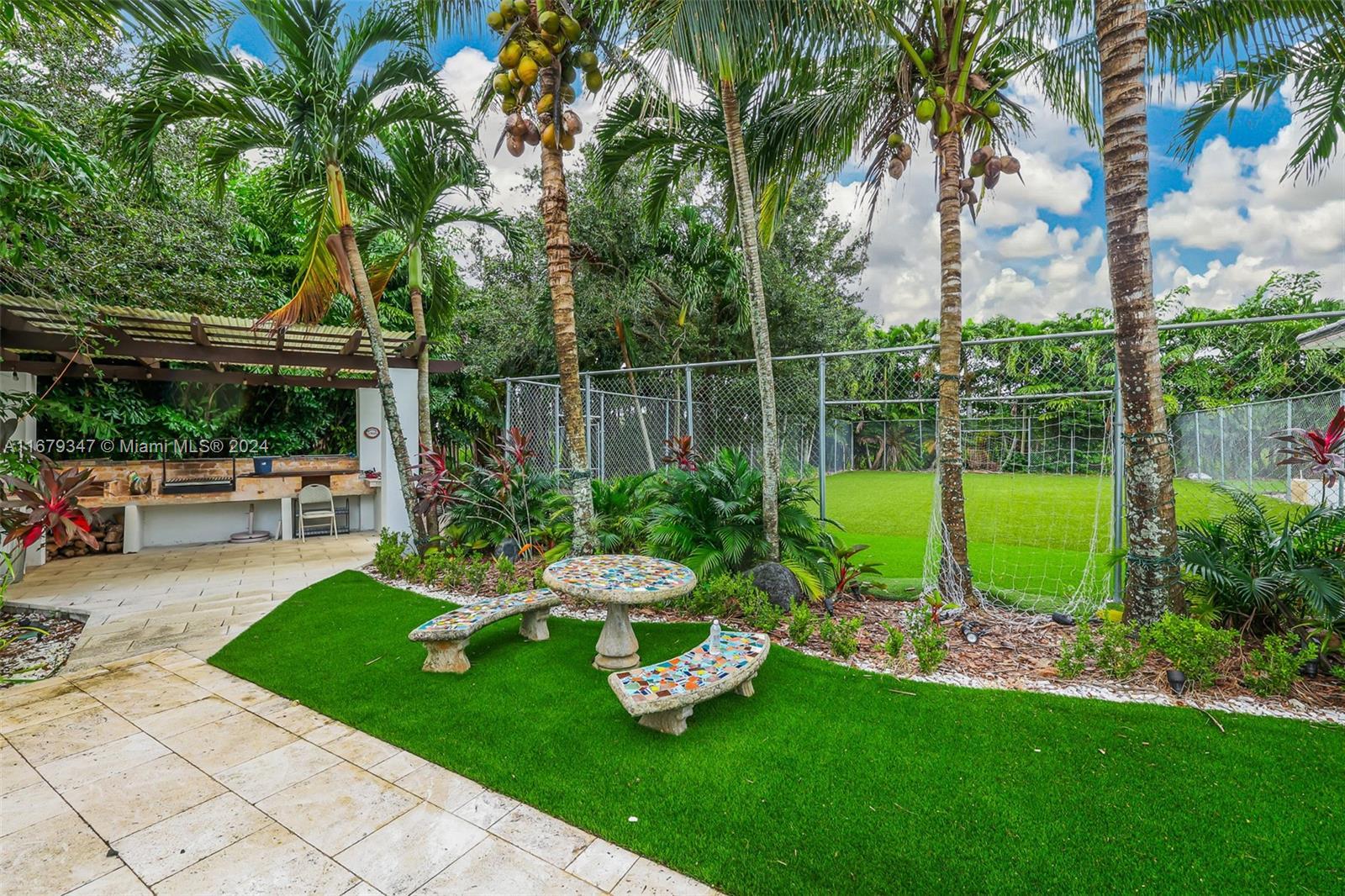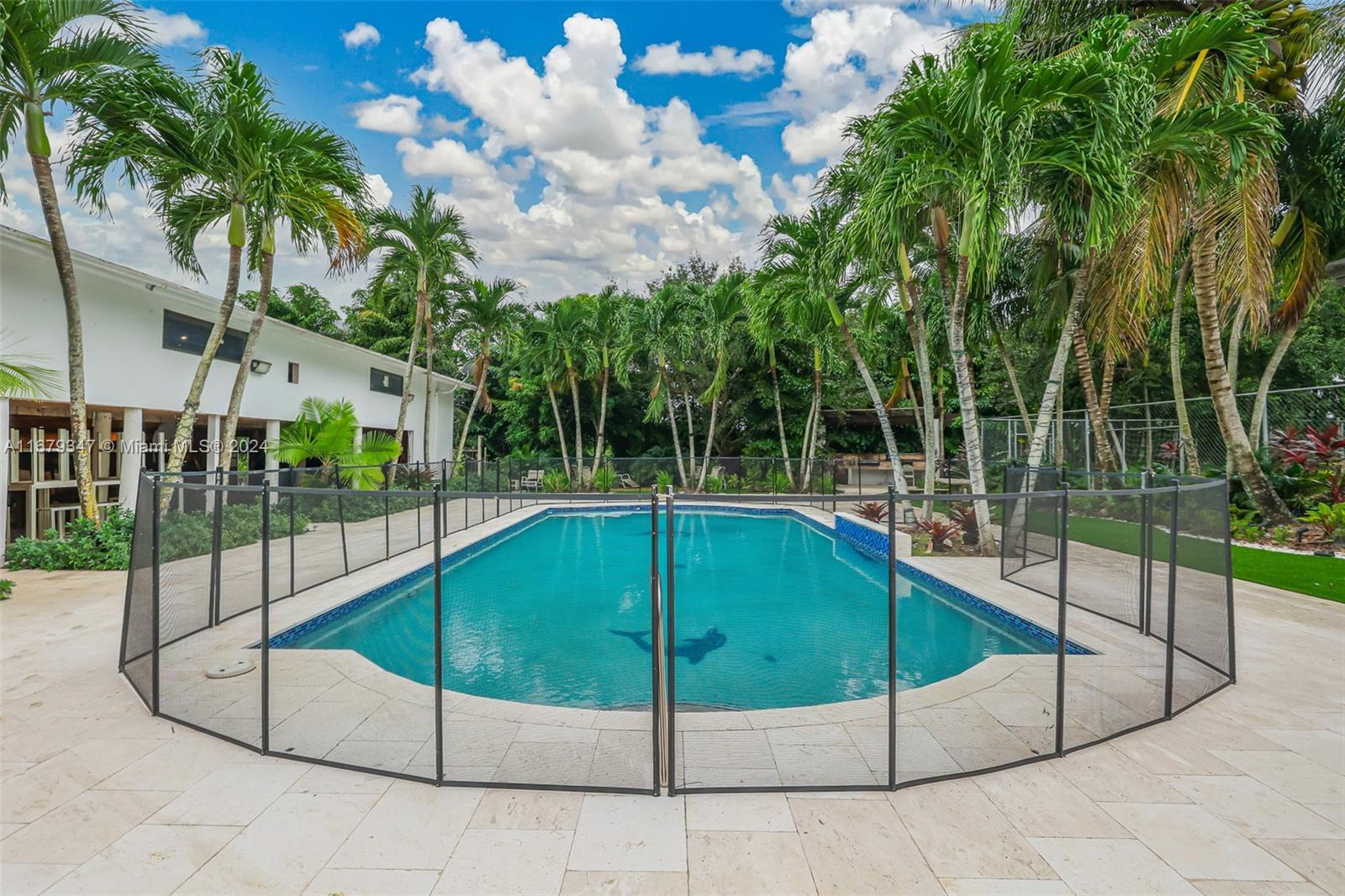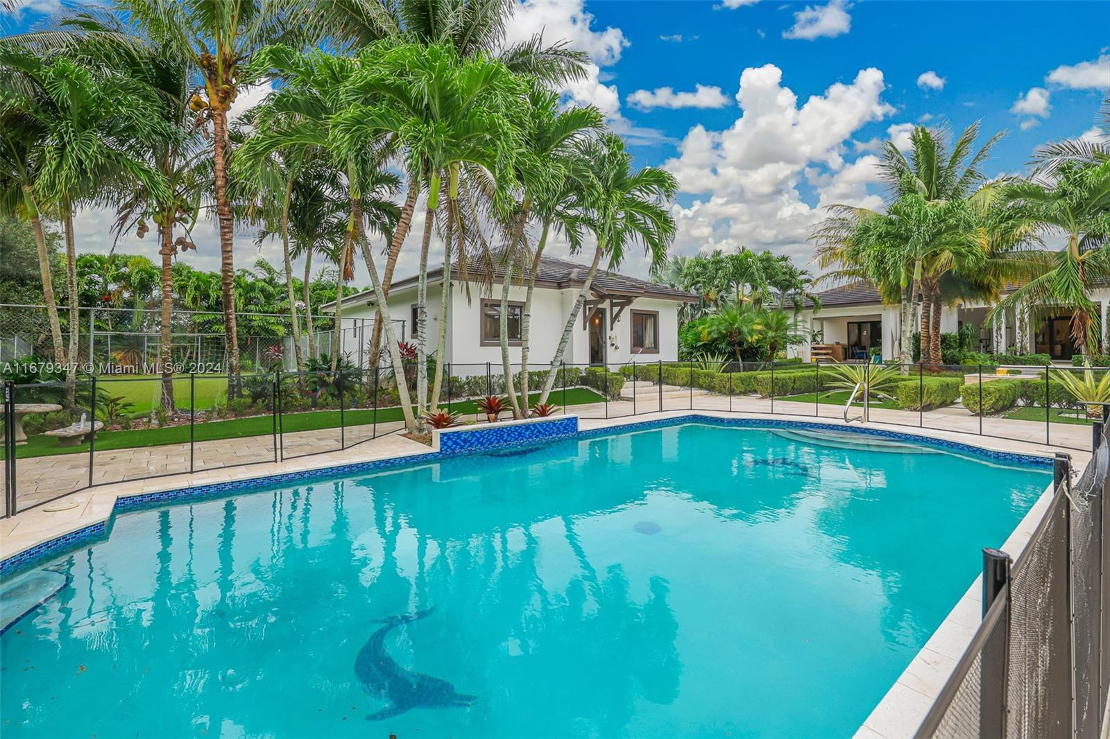 This impressive 10-acre Redland estate was meticulously constructed in 2017. It includes a 1,400 sq ft guest house. The primary residence spans over 5,583 sq ft with impact doors & windows. It features 4 bedrooms, 4.5 bathrooms, an office and a 2 car garage. Formal dining and living room has a built-in bar area, offering an elegant space. Each bedroom includes a private bathroom and walk-in closet. The chef's kitchen with solid wood cabinets and exquisite white quartz countertops. The expansive family room leads to an outdoor built-in BBQ and patio area. Travertine patio floors, pool, and fireplace area, ideal for hosting guests. This estate offers the privilege of residing in your own private paradise with a variety of tropical plants that allow you to experience nature at its best.