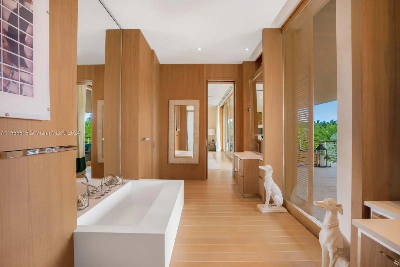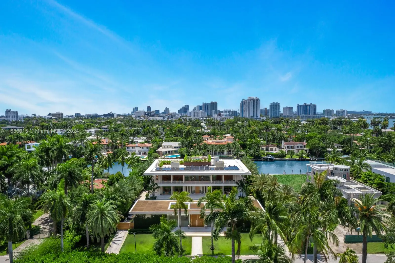 Step Inside With Me! Life.Style on Sunset Islands. This estate exudes swagger and sophistication. Masterfully designed, the use of teak throughout ushers in a new standard in architecturally significant homes. Conceived by Max Strang, its iconic entry pavilion features dual guest suites. Beyond the foyer are the social areas: hosting salon, library, chic sitting lounge, and multiple dining options. The primary suite is both grand & intimate with its fireplace, teak wardrobe, and elegant bath as well as tremendous veranda. The stylistic furnishings are extravagant and comfortable. Complete with a fitness studio, music room, theater, & rooftop, entertainment reigns supreme. Between the glamorous teal pool & 150 ft of water is a curated open-air ambiance equally as stunning as the interiors.
