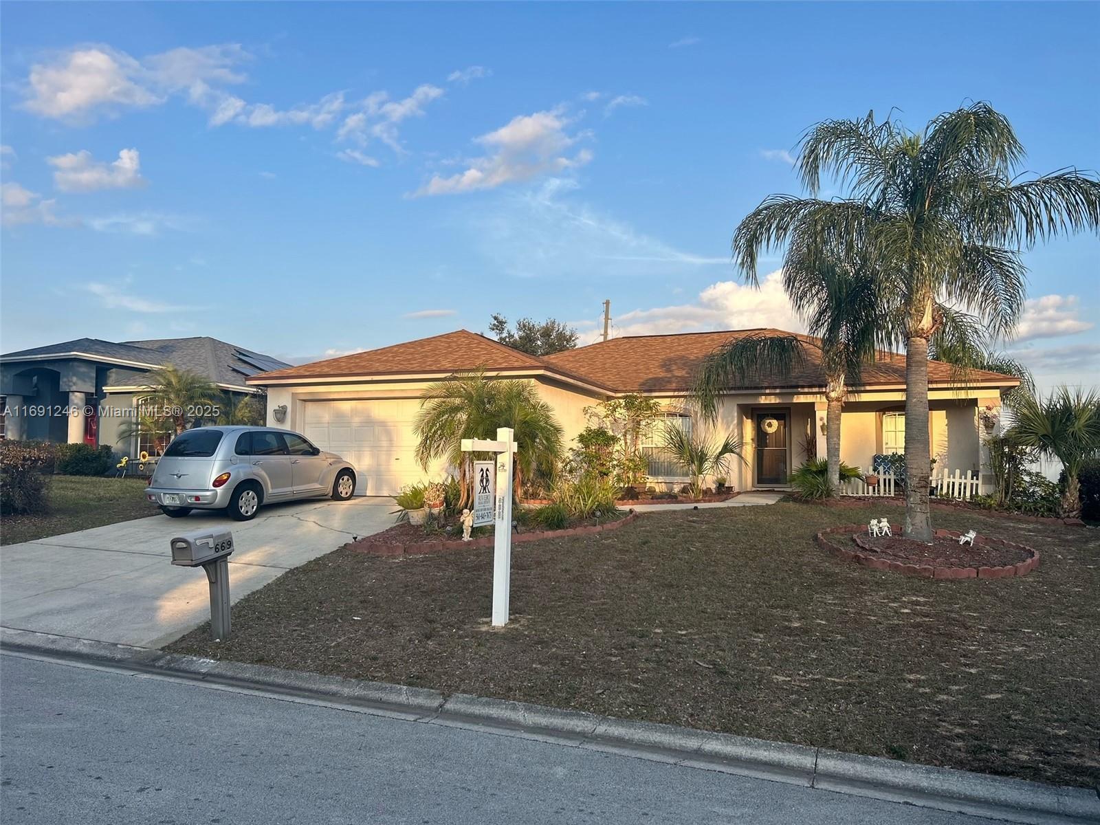 Quiet neighborhood home in the desirable Highland Square community of Davenport! This modern, 3 bedroom and 2 updated baths is a spacious single-family residence offers a perfect blend of style, comfort, and convenience. Well-appointed bedrooms. Bright and inviting living area enhanced by brand-new flooring that sets the tone for contemporary living. The home boasts a new air conditioning system. Luxury laundry room. A 2-car garage, ample space for your vehicles and storage. Enjoy a screened lanai, with front and back patios. A gated yard. Location is everything, walking distance to Ridge Community High School and just minutes away from local shopping. Walt Disney World and Disney Springs are 20 minutes away. INVESTORS CAN RENT FOR $2800-3K MONTHLY ..Easy to Show.