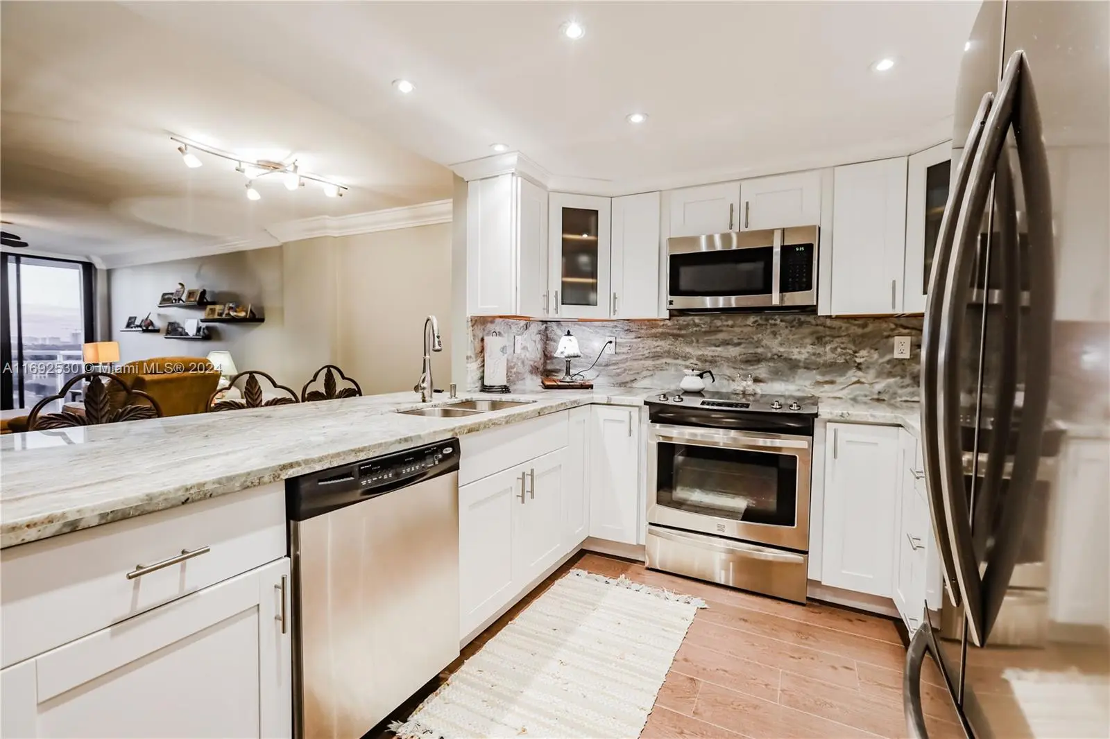 **WHAT A GEM!**PRICE DROP* this beautifully remodelled apartment is a stunning opportunity for those seeking modern living with a breathtaking view. Facing due West, it offers unobstructed panoramic views of the intracoastal waterway, a vibrant skyline, providing a perfect backdrop to daily life. Thoroughly renovated with high end finishes and contemporary design elements featuring open-plan living areas, hard wood like tile and new impact window and door. Spacious bedroom filled with natural light. Bathrooms have been fully updated with luxurious tile work, and guest bath updated to full bath. Ideal for those who appreciate both style and functionality and comfort. *Motivated seller*