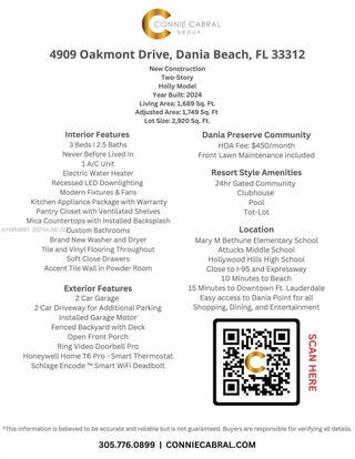 WELCOME TO DANIA PRESERVE, DANIA BEACH'S NEWEST COMMUNITY. THIS HOME OFFERS 3 BEDROOMS, 2.5 BATHROOMS, GATED COMMUNITY, OPEN CONCEPT LIVING, HIGH END FINISHES, PLENTY OF NATURAL SUNLIGHT, AND A FENCED IN BACKYARD. SITUATED CLOSE TO I-95, EXPRESSWAY, AND DANIA POINT WITH ACCESS TO ALL SHOPPING, DINING AND ENTERTAINMENT. 10 MINUTES TO BEACH AND 15 MINUTES TO DOWNTOWN FT LAUDERDALE. PERFECT FOR ANYONE LOOKING FOR A RARE OPPORTUNITY WITH EASY ACCESS TO ALL THAT BROWARD COUNTY HAS TO OFFER.