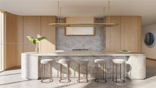 Discover luxury living in this half-floor unit at Bay Harbor Islands' most exclusive new development. This residence boasts 35 feet of unobstructed water and golf course views, with interiors graced by honed Patterned Vanilla Spider Marble flooring throughout. The kitchen is equipped with Gaggenau appliances and Taj Mahal countertops, ideal for gourmet enthusiasts. This residence offers 3 bedrooms, 3 bathrooms, a Family Room, and an elegant powder room, with every corner reflecting extreme attention to detail Including a wine wall. The bathrooms showcase exquisite finishes, from travertine floors and leather walls in the primary to Crema di Oro and Carrara marble in the secondary baths. Residents enjoy access to boat slips and a yacht concierge at the exclusive, residents-only yacht club