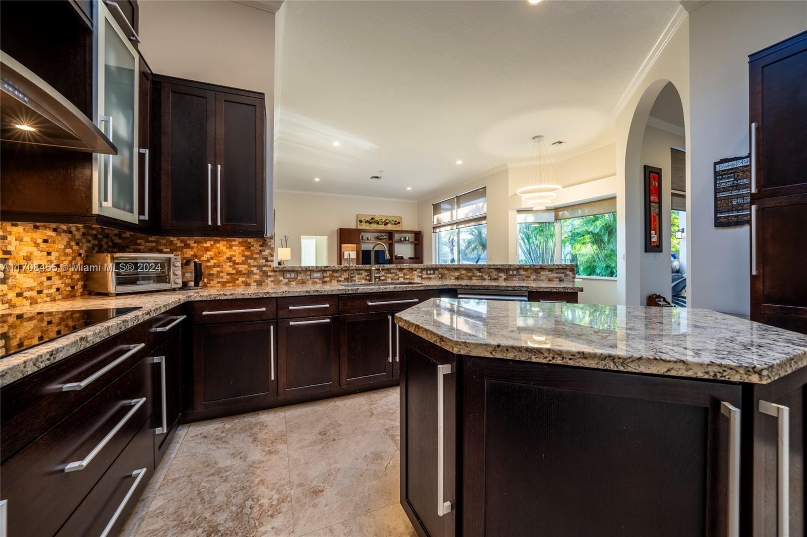 Fully Renovated Home in Weston Hills CC! This 5-bedroom, 4.5-bathroom home with an office and den offers modern elegance with a NEW ROOF (23), FULLY IMPACT WINDOWS (24), and a NEW HVAC system (22). The gourmet kitchen is a chef's paradise, featuring granite countertops, a center island, brand-new stainless steel appliances, a wine fridge, an osmosis-alkaline water system, and an oversized pantry. Enjoy 24x24 marble flooring in the living areas and European wooden floors in the owner’s suite, office, and guest room. Step outside to your private oasis, complete with a resurfaced Diamond Brite freeform pool with a fountain, a new pool deck, and a covered patio with a cabana bath. Luxury, style, and comfort await—schedule your tour today!