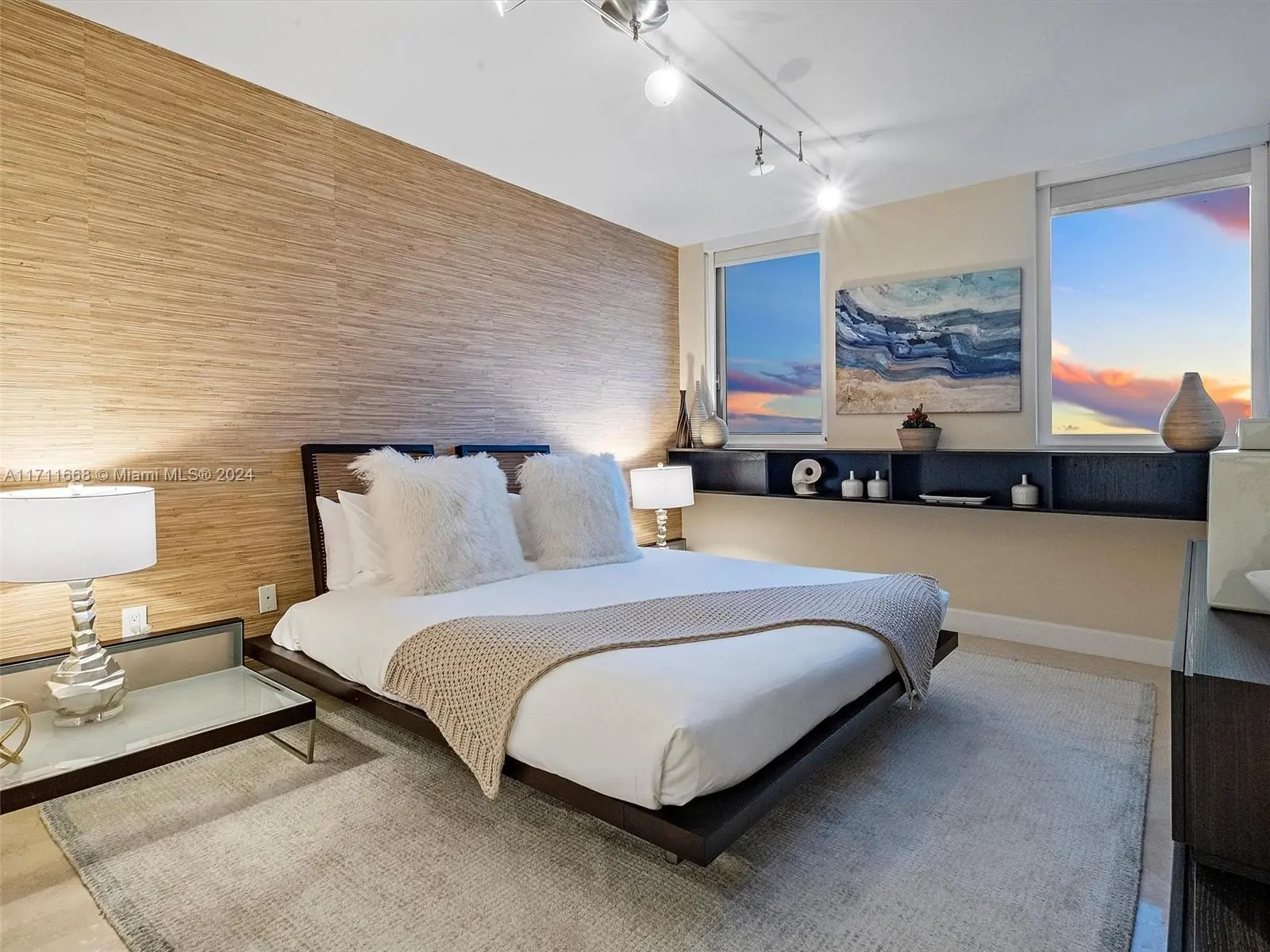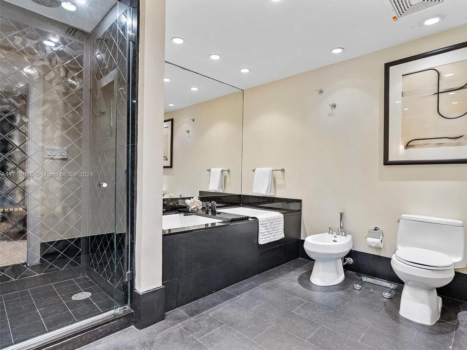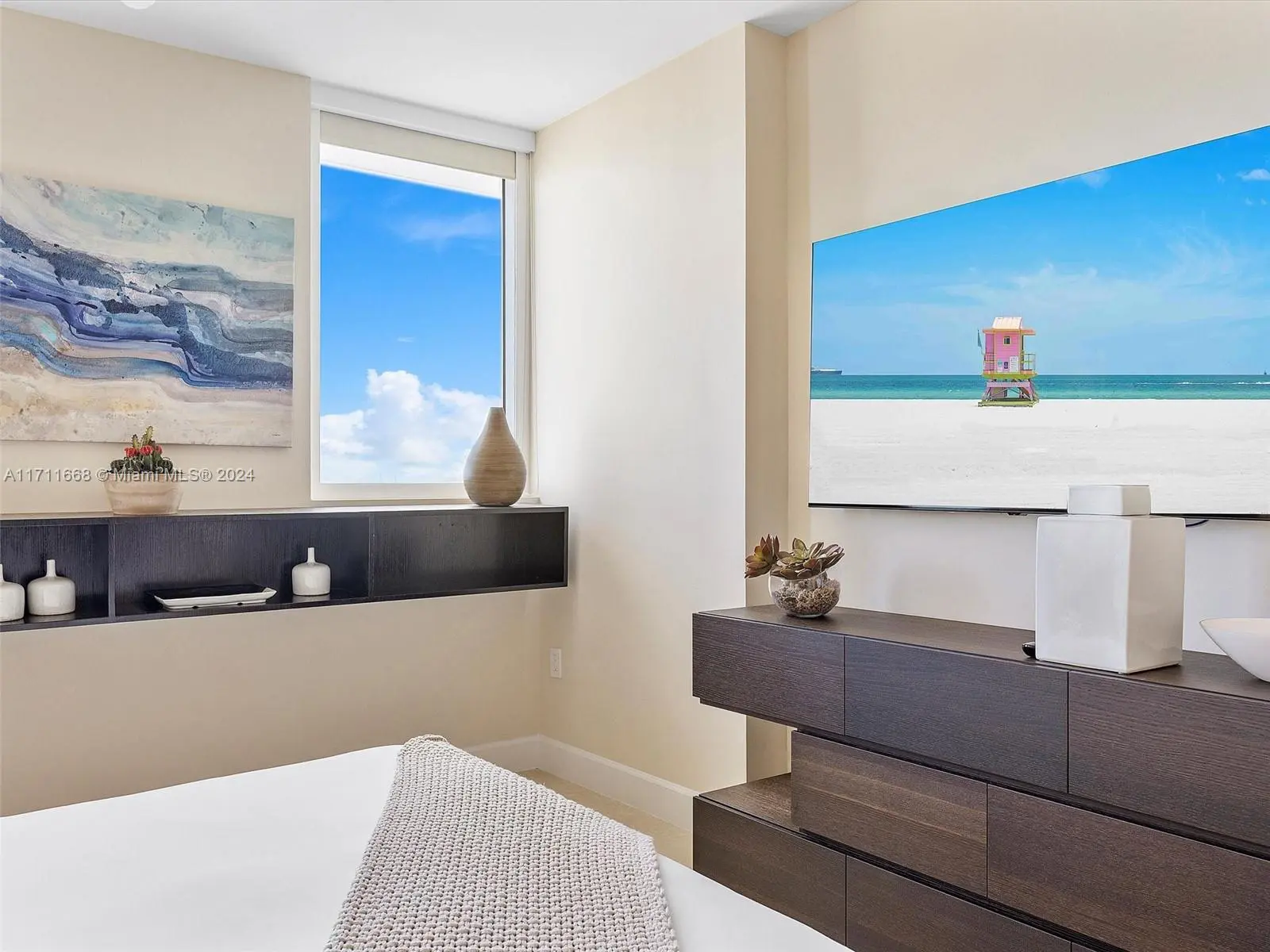 Located on the 30th floor of the prestigious Setai Miami Beach, this luxurious 2-bedroom ocean view condo offers an unparalleled living experience. With 1,209 sf, it features direct ocean views from all bedrooms through floor-to-ceiling windows. The master suite includes a king bed, spa jetted tub, and glass door walk-in shower, while the second bedroom has a queen bed and fully stocked closet. The kitchen is equipped with top-of-the-line appliances. Guests have access to the Setai's amenities, including three beachfront pools, a lavish spa, upscale restaurant, and 24-hour concierge. Additional amenities include valet parking, a gym, and beach service. This condo combines home comforts with the luxury of a 5-star resort. Short term rentals available through Five Star Luxury Travel.