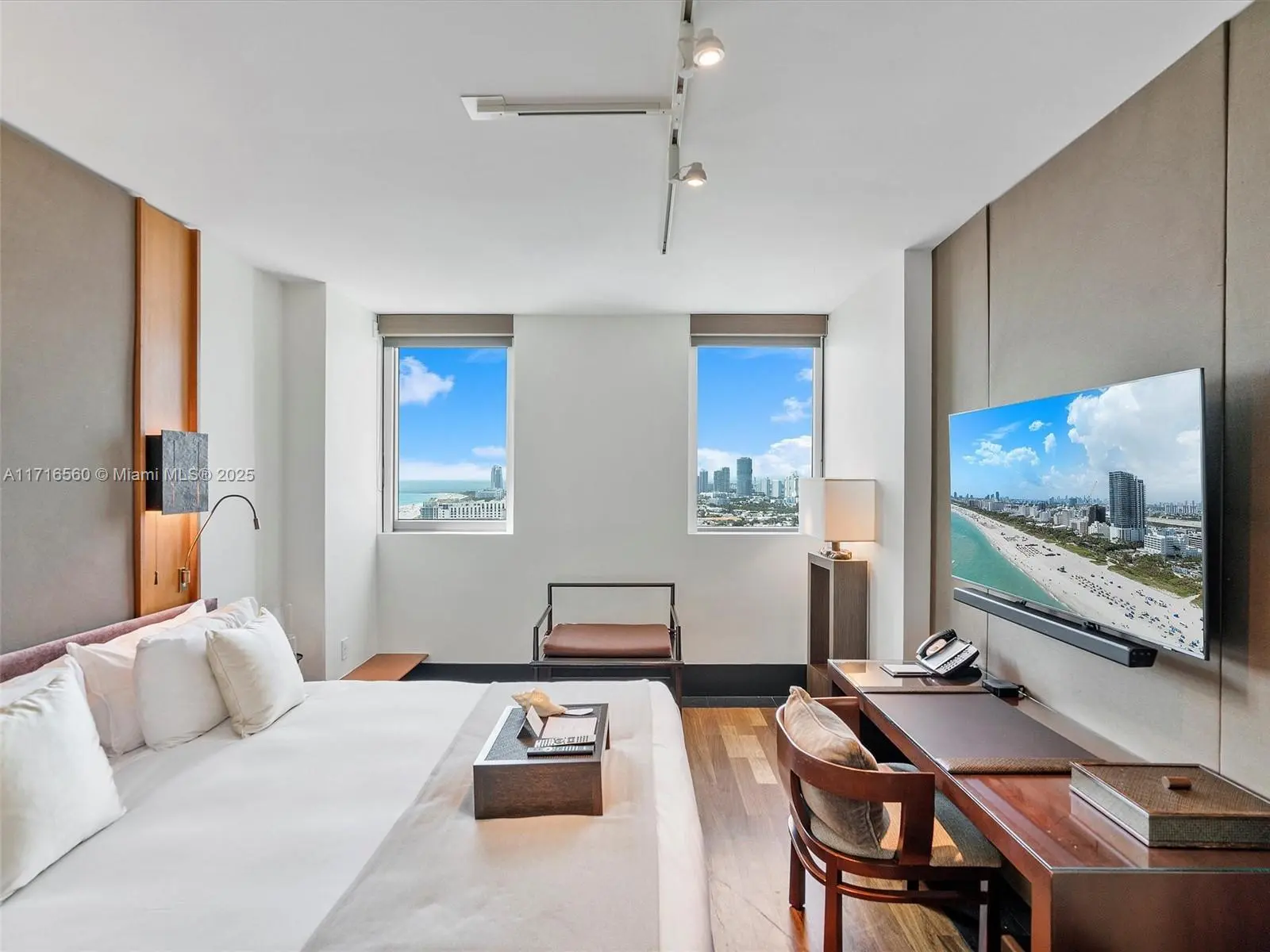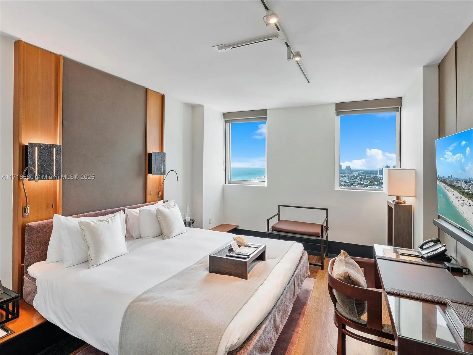 Experience luxury living at The Setai Miami Beach in this stunning 30th-floor, 2-bedroom ocean view condo. Spanning 1,209 sf, it features breathtaking ocean views through floor-to-ceiling windows. The master suite includes a king bed, a spa jetted tub, and a glass walk-in shower, while the second bedroom offers a queen bed and a fully stocked closet. The gourmet kitchen is equipped with top-of-the-line appliances. Guests enjoy access to The Setai’s exceptional amenities, including three beachfront pools, a lavish spa, an upscale restaurant, and 24-hour concierge service. Additional features include valet parking, a gym, and beach service. This condo combines elegance and comfort for an unparalleled living experience.