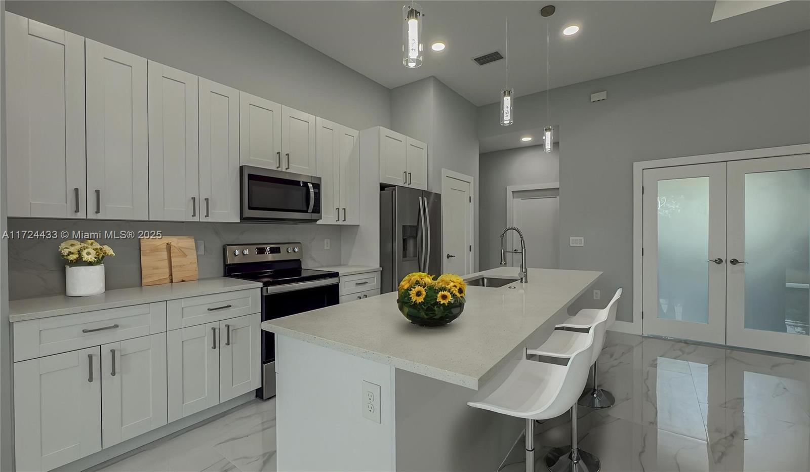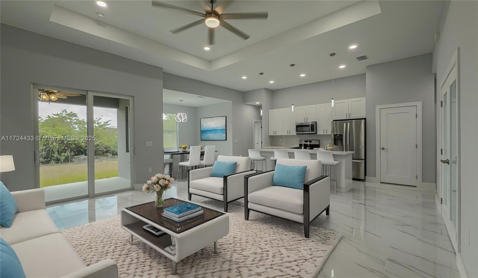 PRICE REDUCED! Modern Brand-New home in Lehigh Acres For buyers who present a full-price offer, we are including a screened-in lanai ($3000 value), an ideal space for entertaining, plus a washer and dryer set ($2000 value), making move-in a breeze! This spacious 3-bedroom + Den, 2-bathroom home also features an open floor plan designed for modern living. Beautiful porcelain tile floors, high coffered ceilings. The kitchen includes solid wood cabinets, stainless steel appliances. Master bathroom with walk-in shower and freestanding bathtub. Impact-resistant Low-E windows, LED lighting and a digital thermostat for AC. Beautiful outdoor space with a rough-in summer kitchen ready to build. Don't miss this opportunity, PRIME LOCATION. Contact us to schedule a showing.
