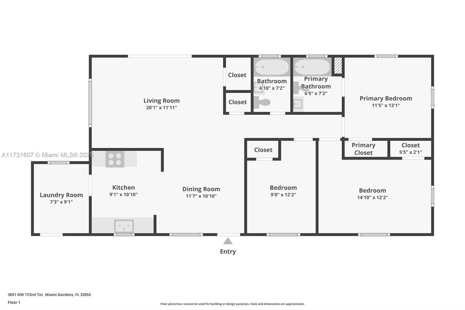 Welcome to your ideal Miami Gardens home! This 3-bedroom, 2-bath property perfectly blends comfort, convenience, and outdoor potential. Featuring a half-circular driveway and carport, parking is a breeze. The primary suite offers an en-suite bathroom with a relaxing tub-and-shower combination, while each bedroom includes spacious closets. The kitchen is equipped with an electric range, sleek hood, and space for a two-door refrigerator. Sliding glass doors lead to a large backyard oasis with fruit trees, perfect for entertaining or relaxing. Conveniently located near shops, restaurants, and attractions, this home combines practicality with an unbeatable location, making it a must-see!