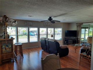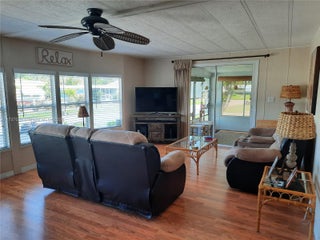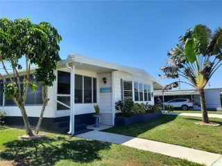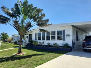 TROPICAL BREEZE ESTATES - OWN YOUR OWN LAND! Attractive 55 + community clubhouse/pool, and low HOA’s ($120/month)! Turn-key, renovated, well-maintained, furnished, lots of extras. • Exceptionally large lot (double size) • New A/C unit (with heat) – installed November 2022 • Lots of parking • Outdoor spa • Large garage with workshop (16 x 10 feet) • Golf cart with new gel batteries and charger • Large Florida room (kitchen level) • Tiki Bar inside living room (including small bar fridge) • Wine cooler fridge in kitchen • Stainless steel appliances (stove, dishwasher and fridge with ice/water dispenser) • Washer and dryer inside of house • 2 patio doors • Ceiling fans • Furniture, dishes, utensils, tools, linen: everything stays = fully equipped house
