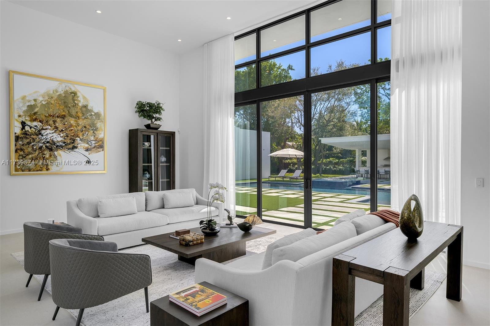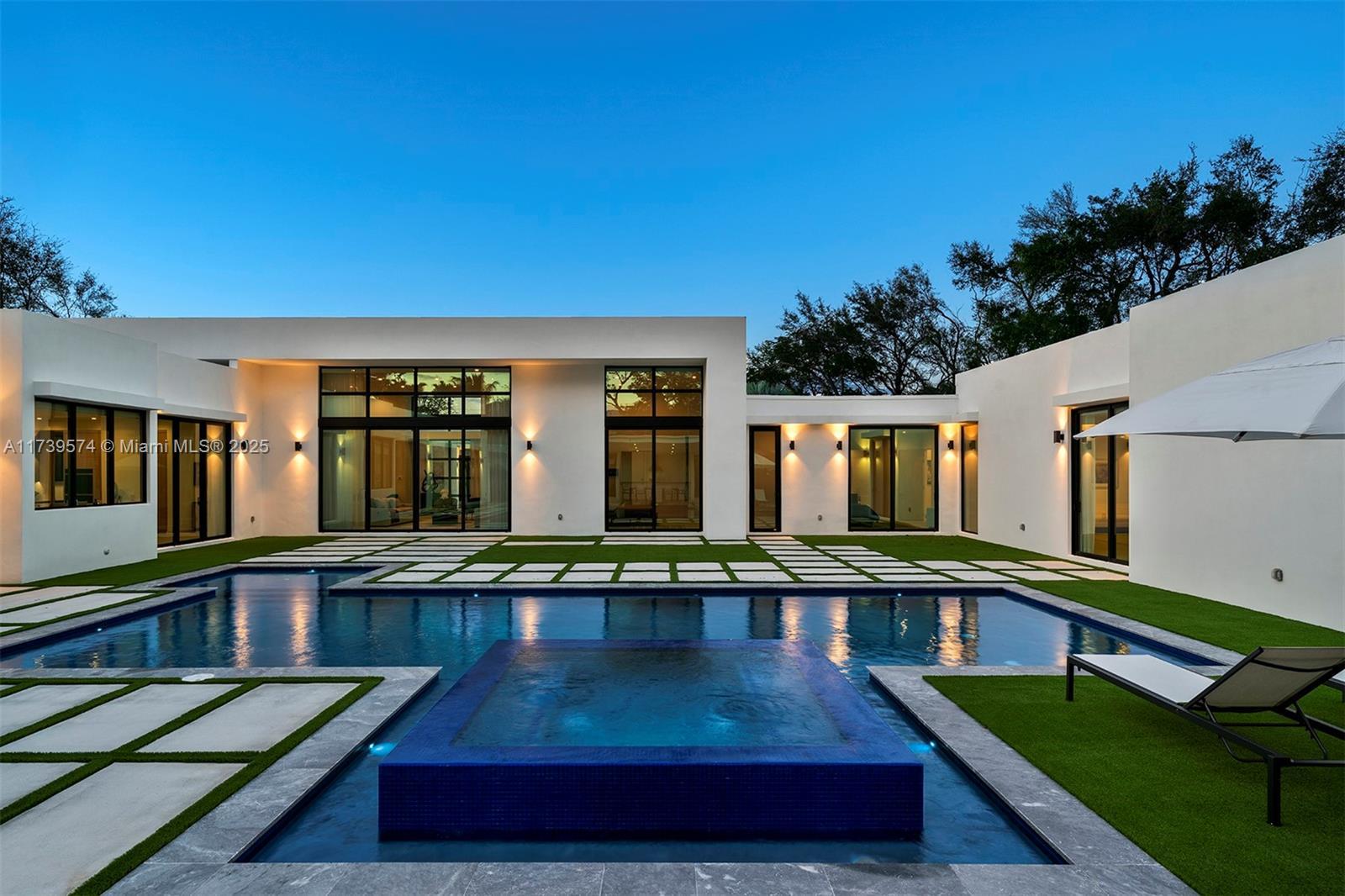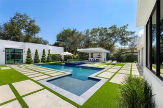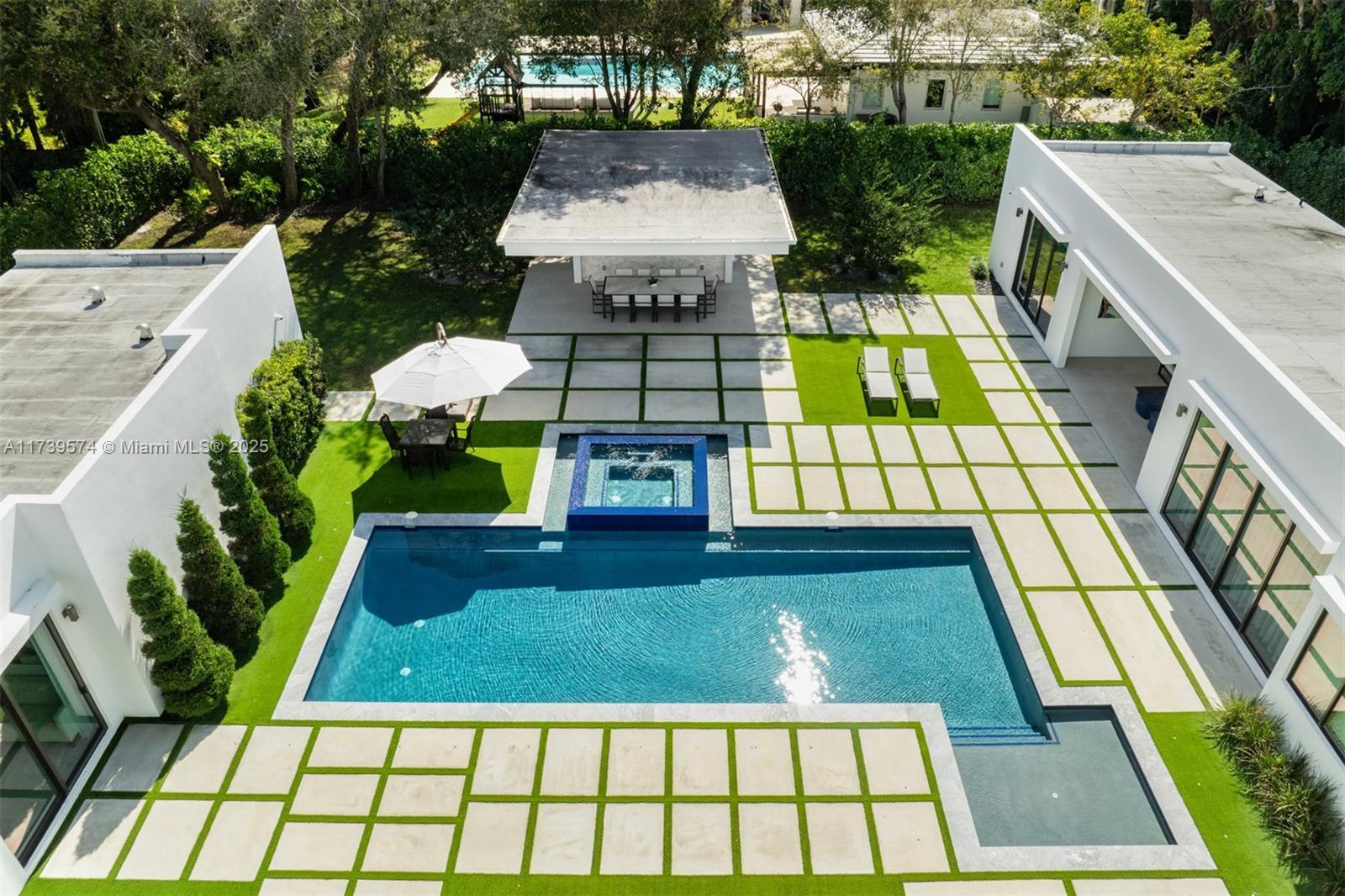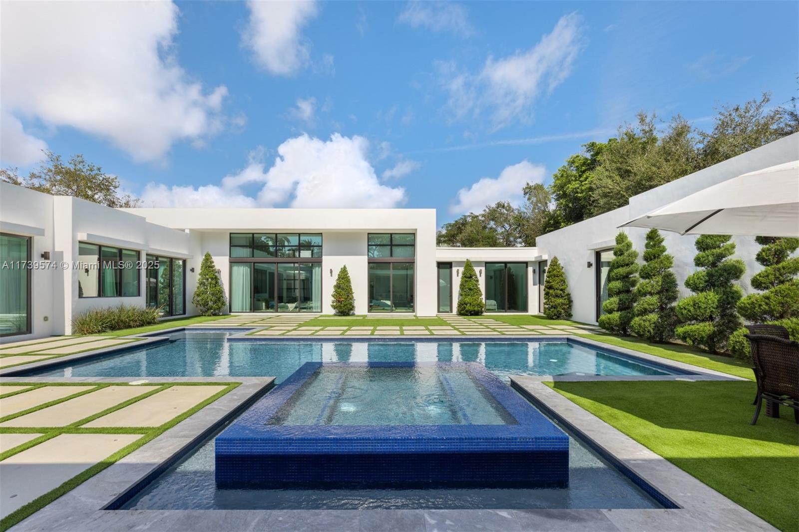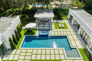 Experience unparalleled elegance in this exquisite modern estate, built in 2022, nestled in Pinecrest. This residence welcomes you with captivating water elements and an expansive open layout featuring soaring ceilings and stunning panoramic vistas. This home offers 7 bedrooms and 7/1 bathrooms, including a detached 1-bedroom, 1-bathroom guest house. The Italian-inspired kitchen is a masterpiece, with Wolf and SubZero appliances, a wet bar, a butler’s pantry, and a glass-enclosed wine display. The primary suite features a cozy sitting area, walk-in closets, and a spa-inspired bathroom with a floating soaking tub and a rain shower. Step outside to a vast swimming pool, jacuzzi, covered terraces, and a summer kitchen. Additional highlights include a spacious 3-car garage, & a 2-car carport.