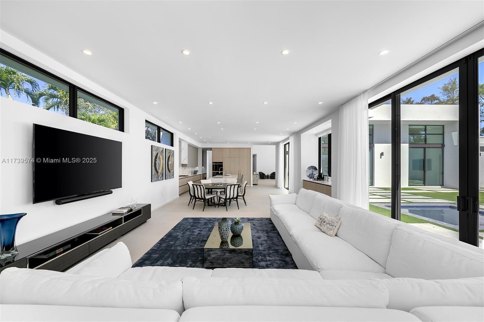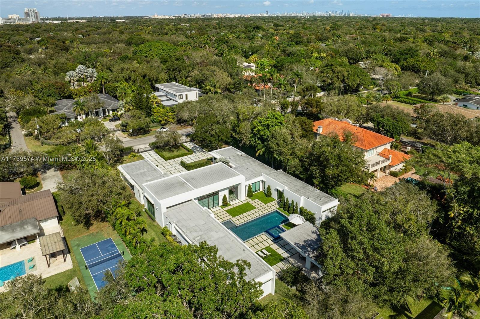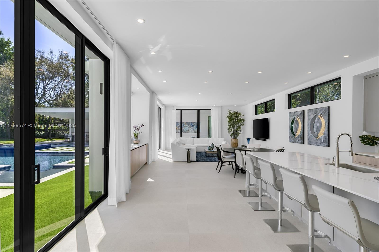Experience unparalleled elegance in this exquisite modern estate, built in 2022, nestled in Pinecrest. This residence welcomes you with captivating water elements and an expansive open layout featuring soaring ceilings and stunning panoramic vistas. This home offers 7 bedrooms and 7/1 bathrooms, including a detached 1-bedroom, 1-bathroom guest house. The Italian-inspired kitchen is a masterpiece, with Wolf and SubZero appliances, a wet bar, a butler’s pantry, and a glass-enclosed wine display. The primary suite features a cozy sitting area, walk-in closets, and a spa-inspired bathroom with a floating soaking tub and a rain shower. Step outside to a vast swimming pool, jacuzzi, covered terraces, and a summer kitchen. Additional highlights include a spacious 3-car garage, & a 2-car carport.