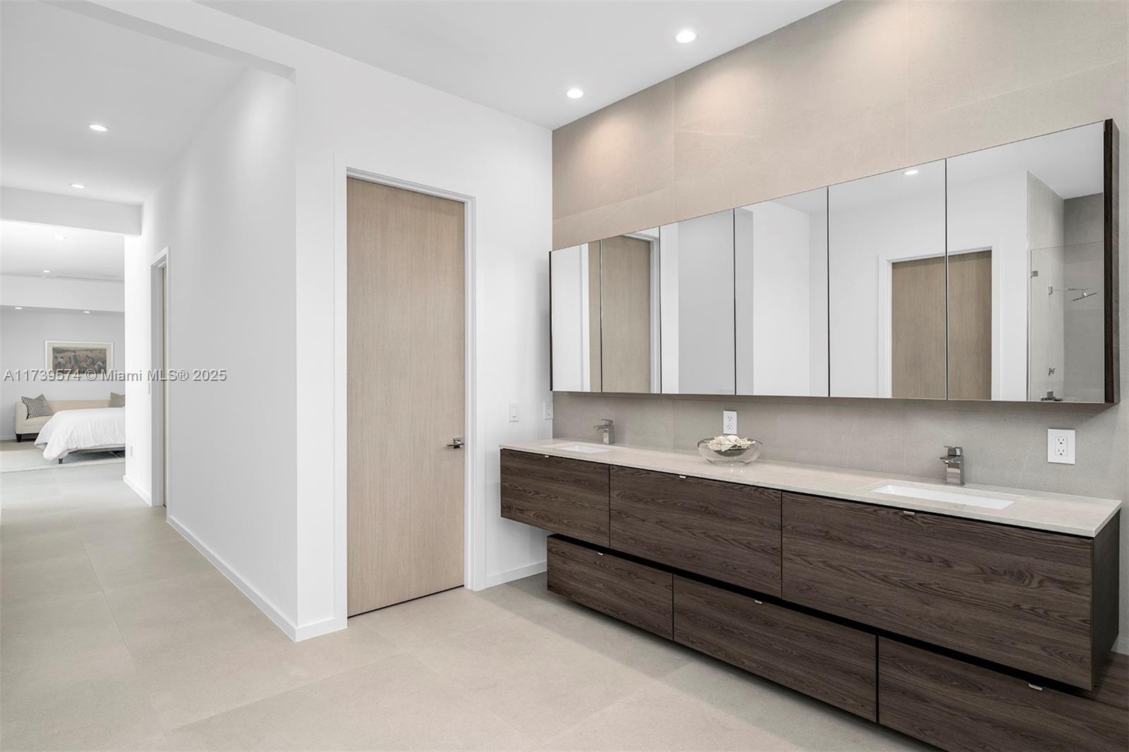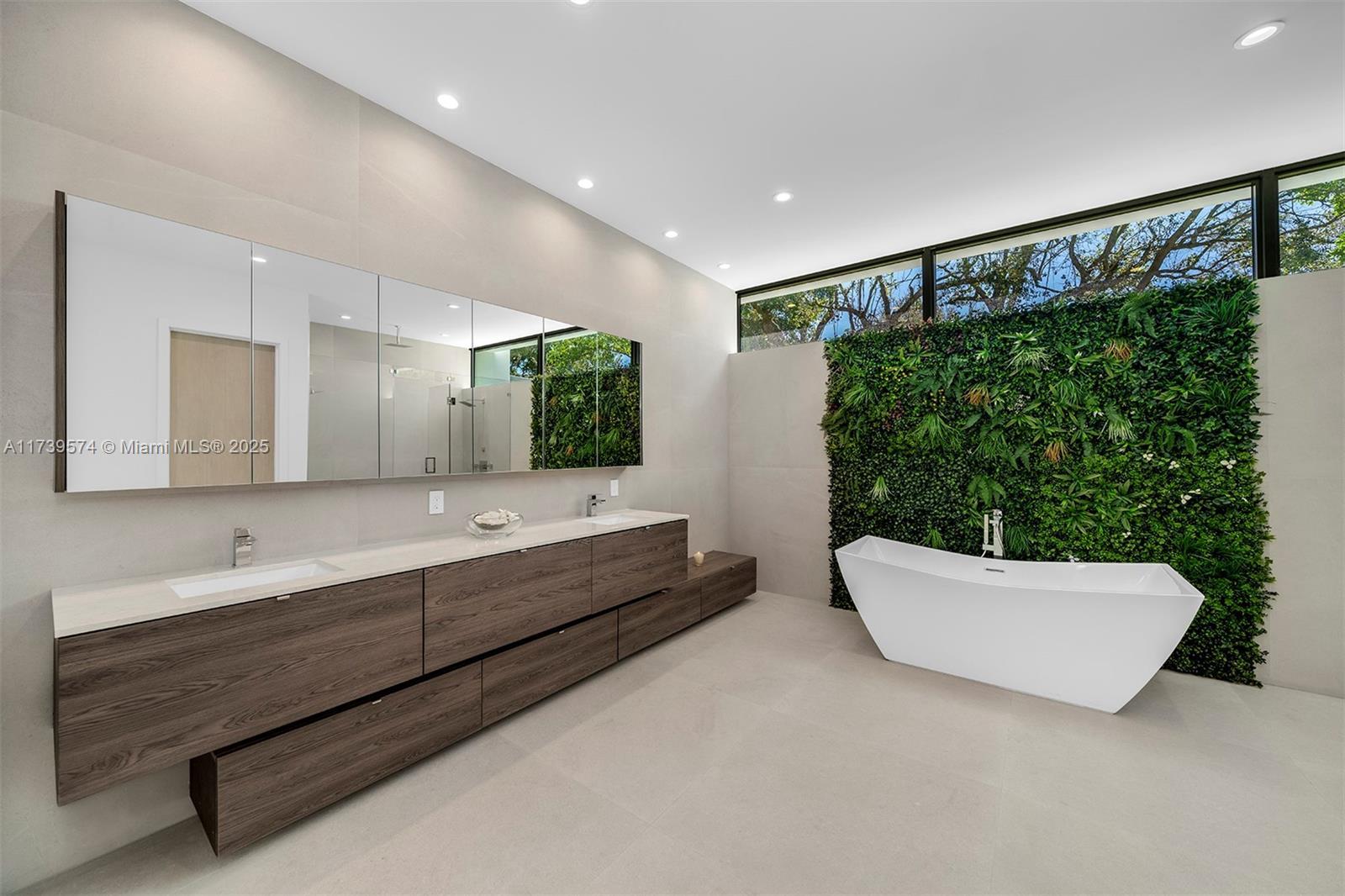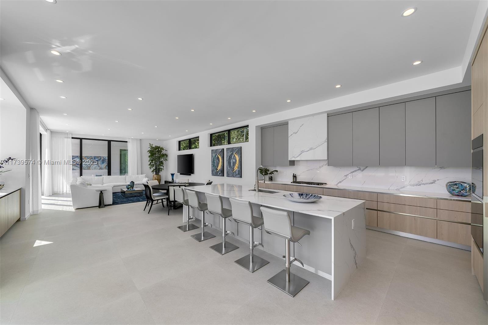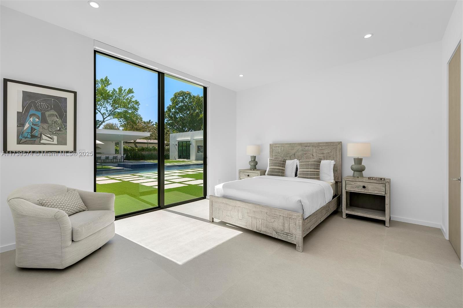 Experience unparalleled elegance in this exquisite modern estate, built in 2022, nestled in Pinecrest. This residence welcomes you with captivating water elements and an expansive open layout featuring soaring ceilings and stunning panoramic vistas. This home offers 7 bedrooms and 7/1 bathrooms, including a detached 1-bedroom, 1-bathroom guest house. The Italian-inspired kitchen is a masterpiece, with Wolf and SubZero appliances, a wet bar, a butler’s pantry, and a glass-enclosed wine display. The primary suite features a cozy sitting area, walk-in closets, and a spa-inspired bathroom with a floating soaking tub and a rain shower. Step outside to a vast swimming pool, jacuzzi, covered terraces, and a summer kitchen. Additional highlights include a spacious 3-car garage, & a 2-car carport.