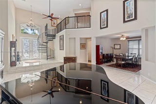 Experience a Luxury Lifestyle nestled in the prestigious Grand Palms Golf community. This 4-bedroom, 4-bath estate sits on a 13,000 sq. ft. private lot, offering elegance and tranquility. The chef’s kitchen features a center island, double dishwashers, trash compactor, double oven, oversized fridge, wet bar, perfect for entertaining. Soaring 17-ft ceilings, tile & wood flooring, an open, light-filled design set the stage for refined living. The primary suite boasts a huge walk-in closet, soaking tub, & steam shower, laundry chute, spa-like bath & bidet. Outside, enjoy a screened-in pool, spa, & private golf area. With impact windows/doors (2018), three A/Cs (2018), new roof (2018), a circular driveway, & 3-car garage, this home is move-in ready.