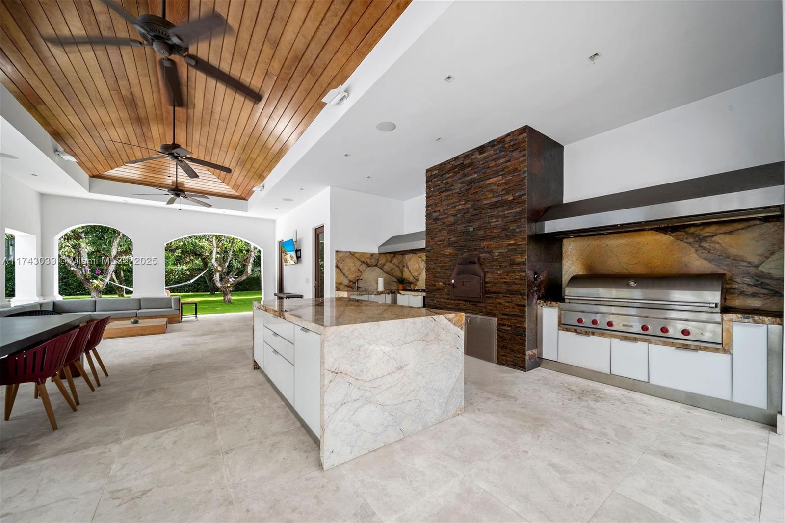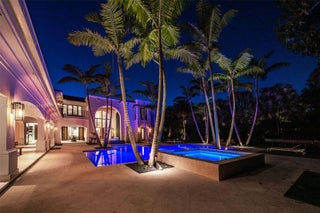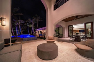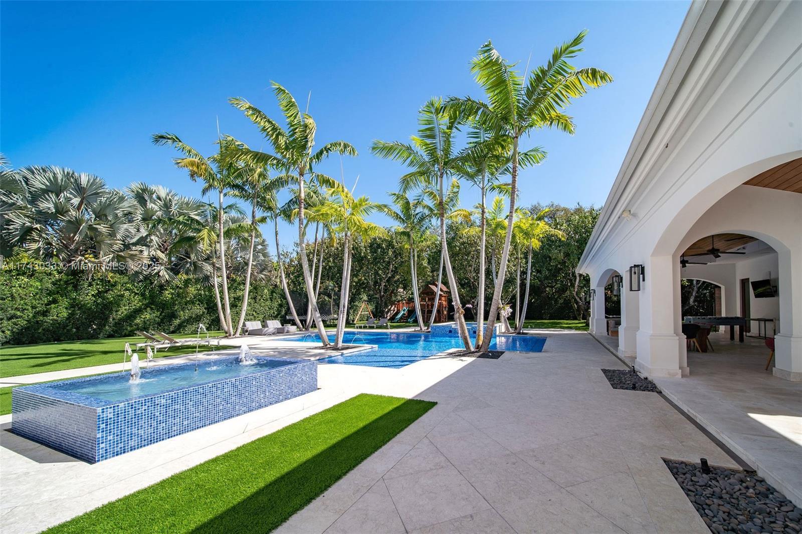 Opulent Oasis of Stritter Estates - as functional as it is beautiful. Gated smart home exudes sophistication at every turn. Lots of natural light permeates through oversized windows into an open floor plan, inviting you to enjoy SoFL living! Hold court in the majestic chef’s kitchen and family room that seamlessly integrate with the idyllic grounds. Entertain in style with the state-of-the-art movie theatre/bar, fully-equipped gym, and multiple ensuite bedrooms with walk-in closets and access to private terraces. The grand covered outdoor patio is an entertainer's dream, with elegant arches, built-in fans, and recessed ceilings. Enjoy the ivy wall, outdoor kitchen, and a gas fire pit while taking in the breathtaking view of the fountain, saltwater pool/spa & turfed area w/playground.
