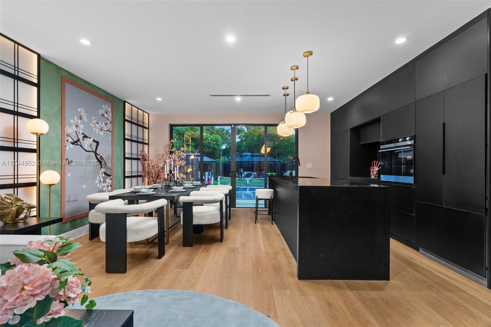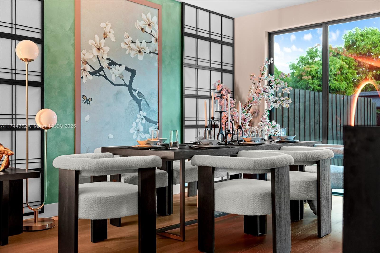 A rare fusion of modern luxury and Zen tranquility—schedule your tour today! Thoughtfully designed with a minimalist aesthetic, this home blends warm wood tones, sleek black finishes, and Zen-like interiors, creating a tranquil yet luxurious retreat. ? Open-Concept Living – Modern black kitchen, ambient lighting, and an elegant dining space with a custom Japanese cherry blossom mural. ? Private Outdoor Sanctuary – A peaceful backyard oasis with a pool, lush landscaping, and a seamless indoor-outdoor flow. ? Move-In Ready – Comes fully furnished with curated, high-end pieces. ? Prime Location – Moments from the Design District, Wynwood, and Midtown, making it a perfect investment or secondary home.