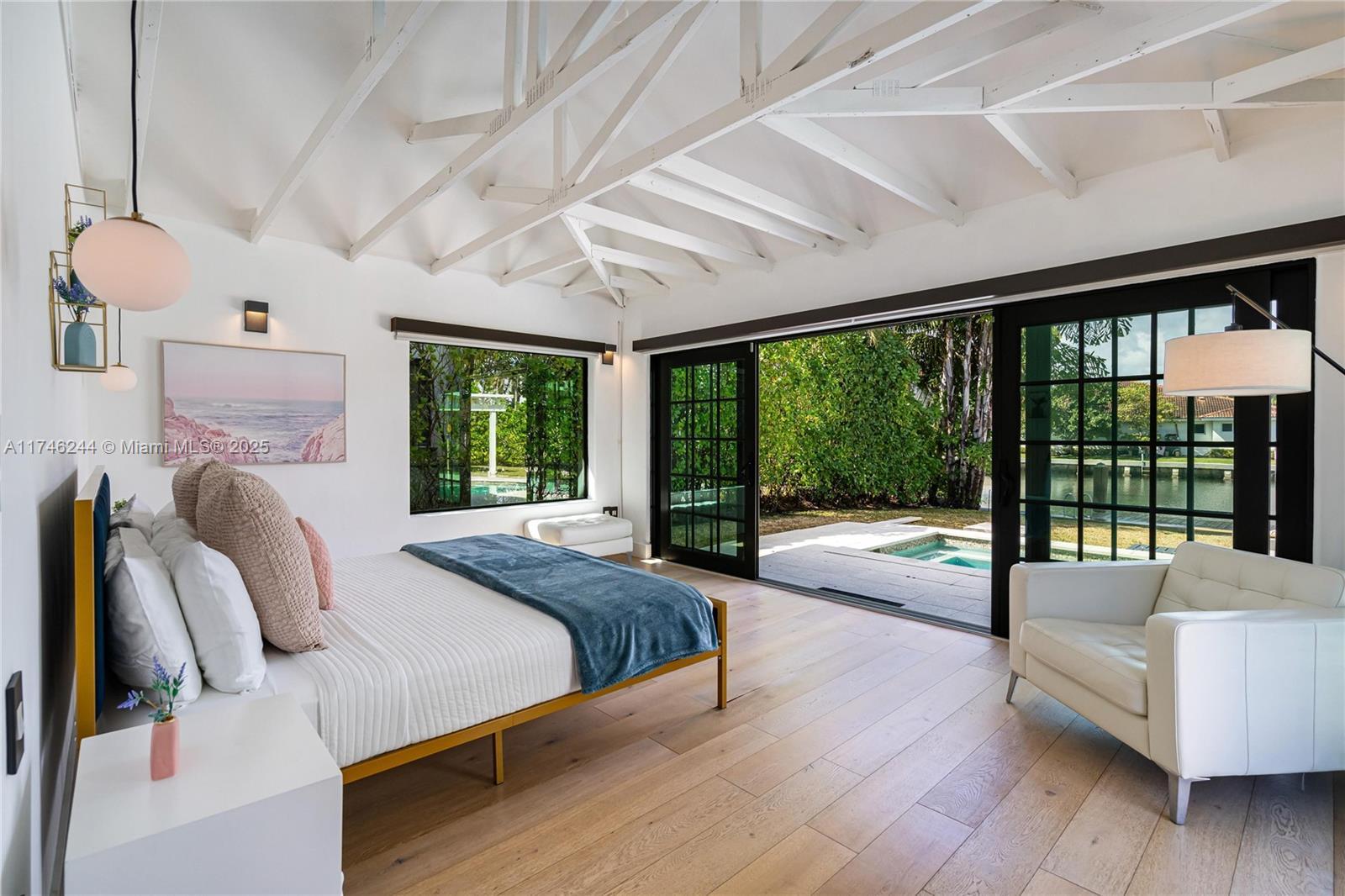 Located in the exclusive, gated enclave of Golden Isles, this stunning 4-bedroom, 4.5-bath waterfront villa spans 3,300 sqft and boasts 85 feet of direct water frontage. Blending timeless mid-century modern architecture with high-end finishes, this home offers unbeatable views and luxury living. The spacious backyard is ideal for year-round entertaining, complete with a heated pool, in-ground hot spa, and a full outdoor kitchen with covered dining. Enjoy iconic South Florida sunsets or head straight to the Intracoastal via your private dock, perfect for boating enthusiasts. Just 10 minutes from the sandy shores of Hollywood Beach and Golden Beach, and only 30 minutes to vibrant Downtown Miami. Fully furnished, this exceptional property is available for annual lease starting July 2026.