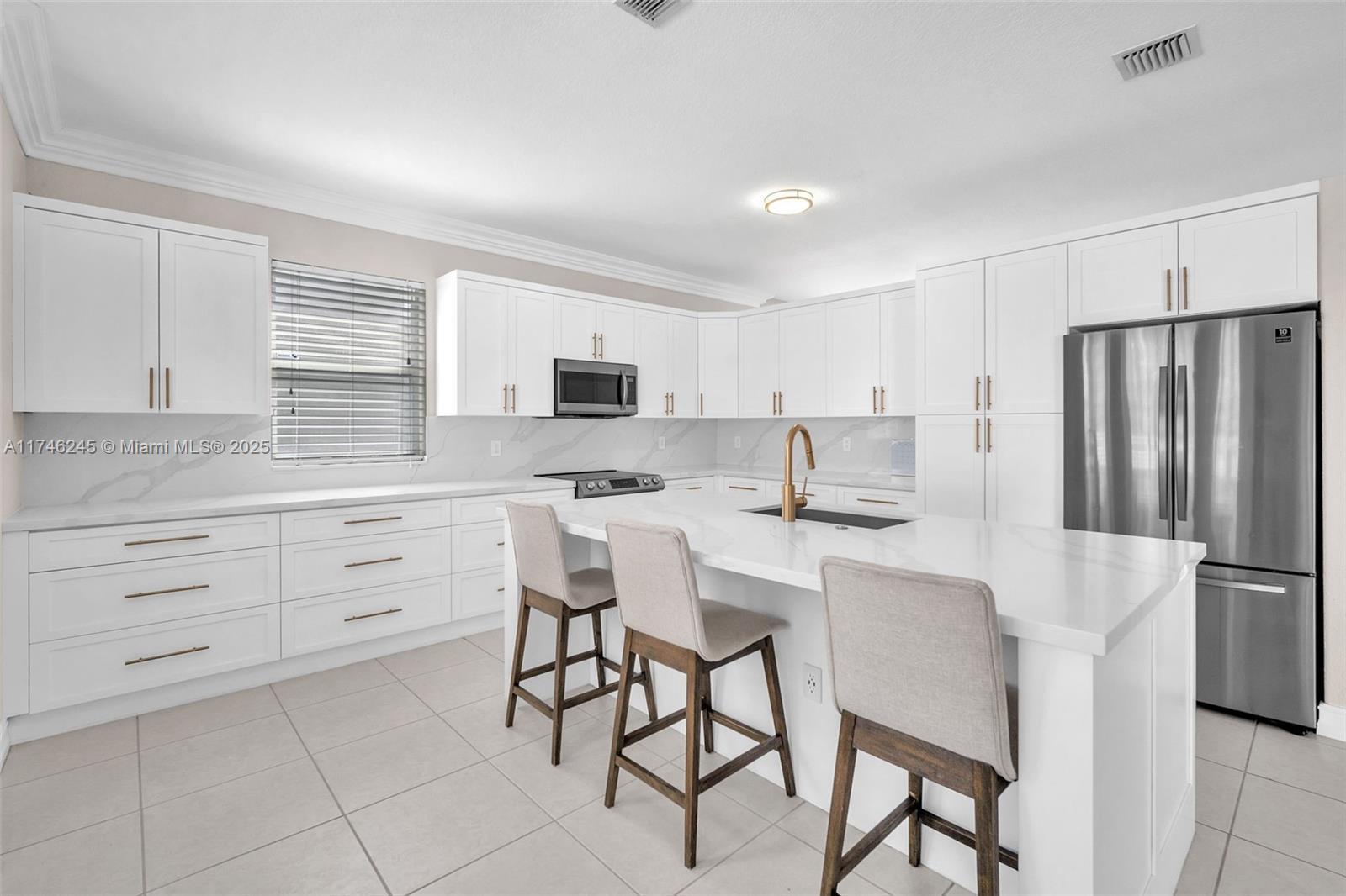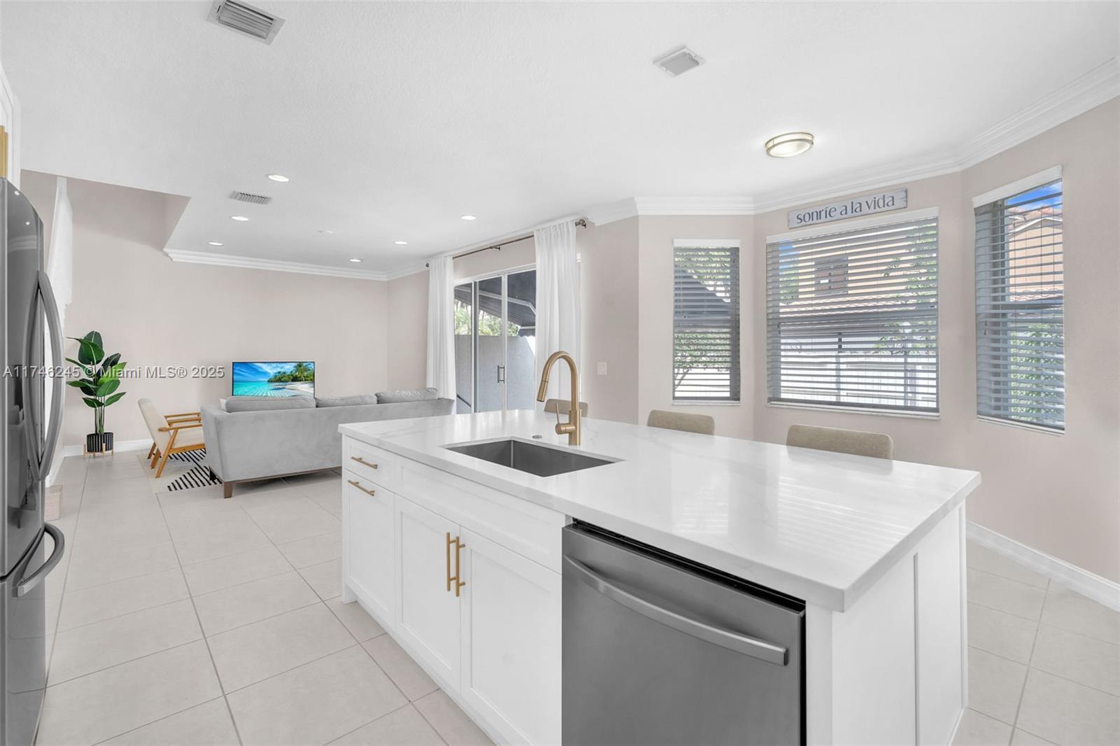 Beautifully updated 4/2.5 home located in prestigious Kingsview @TownGate. This home features a tankless water heater, 2024 HVAC system, crown molding throughout the entire house, tile floors in the downstairs living areas, updated kitchen with quartz countertops and quartz backsplash. The exterior features accordion shutter on the second floor and panels on the first floor, & a large back patio. Roof is original—no known leaks or issues at this time. TownGate features 4 community pools and playgrounds, Elementary school and City Park with Soccer Field, Baseball Field, Swimming pool, Basketball Courts, and Tennis courts.