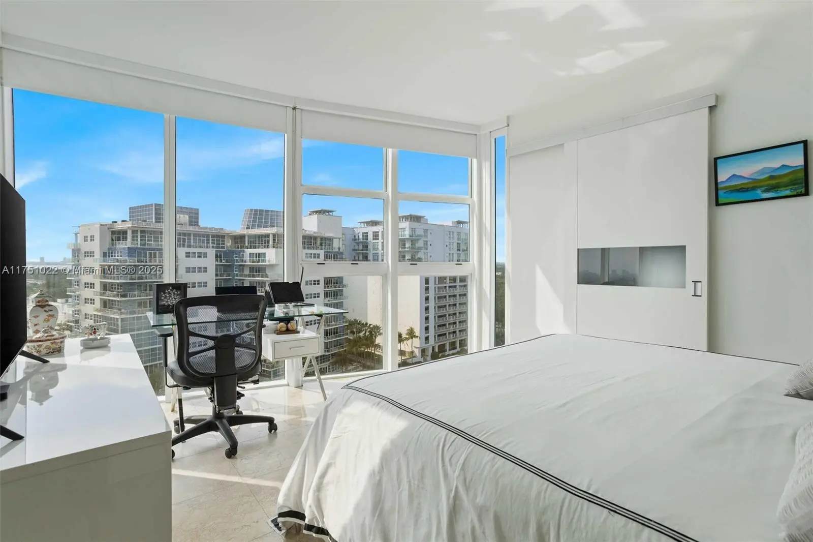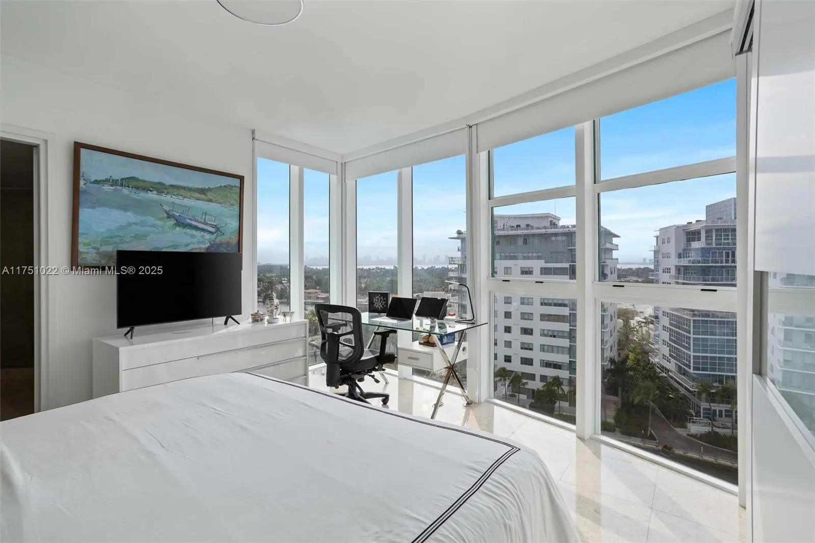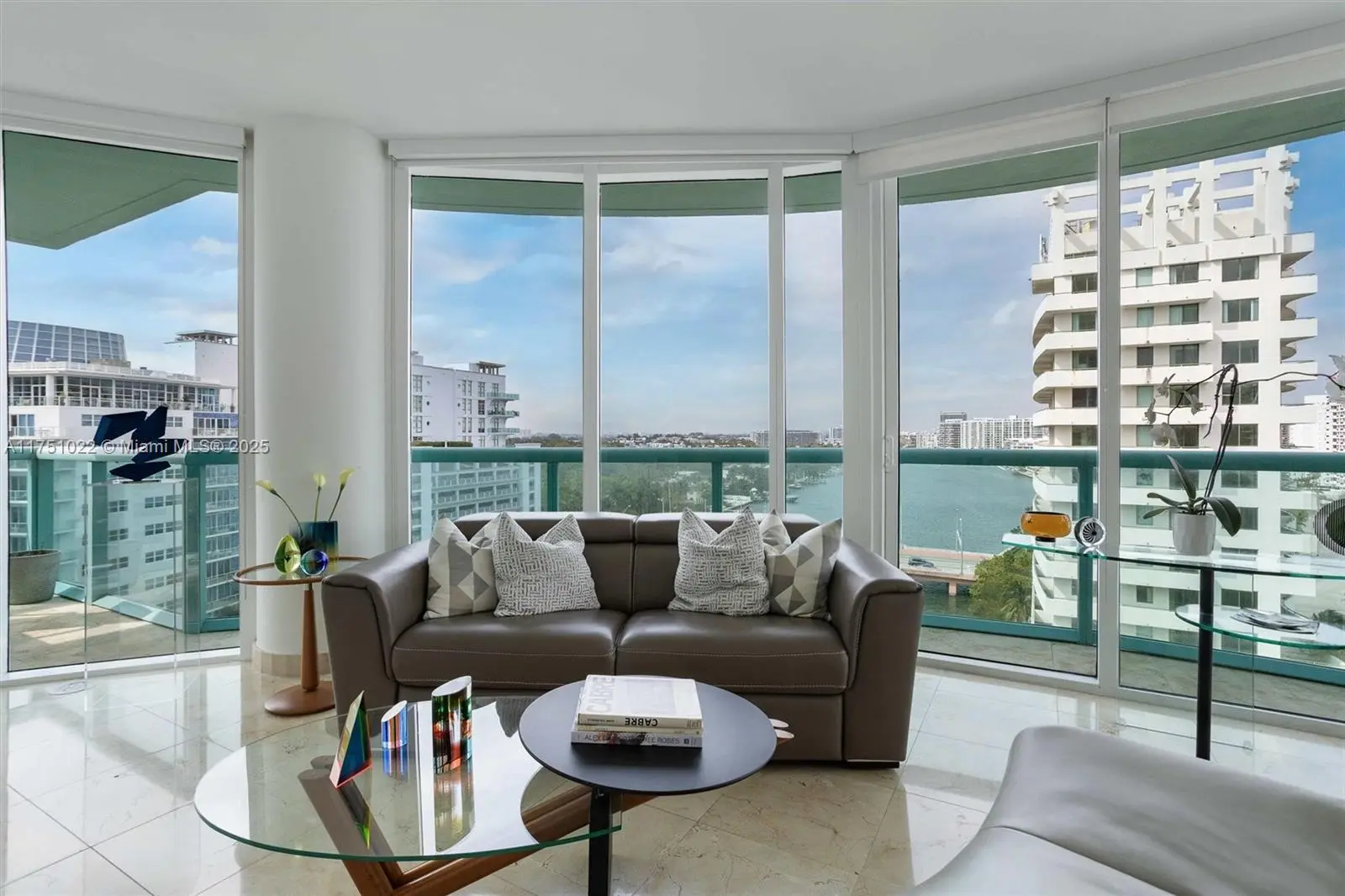 This exclusive, modern and elegant 1,300 sq ft apartment offers unparalleled 270-degree panoramic southern views, capturing the essence of Miami Beach, the Atlantic Ocean, the Intracoastal Waterway, and the iconic Miami skyline. Featuring marble floors and bathrooms and floor-to-ceiling windows, it creates a sophisticated ambiance filled with natural light. It includes 2 comfortable bedrooms, each with its own en-suite bathroom—one featuring a primary bath tub—and an additional half bath for the social areas. Every room boasts stunning Intracoastal views. Situated in a boutique building, the property ensures privacy and exclusivity. Amenities include assigned parking, guest garage, 24/7 security and concierge services, pool, and gym. Surrounded by high-end shops and restaurants.