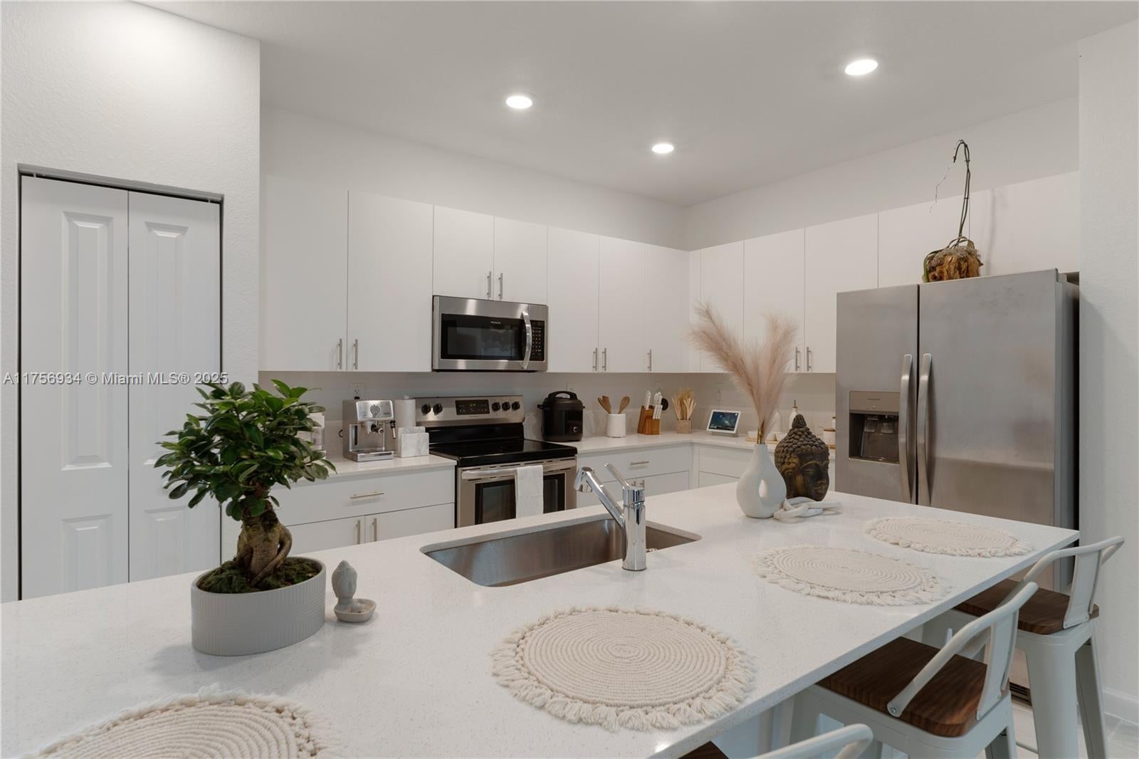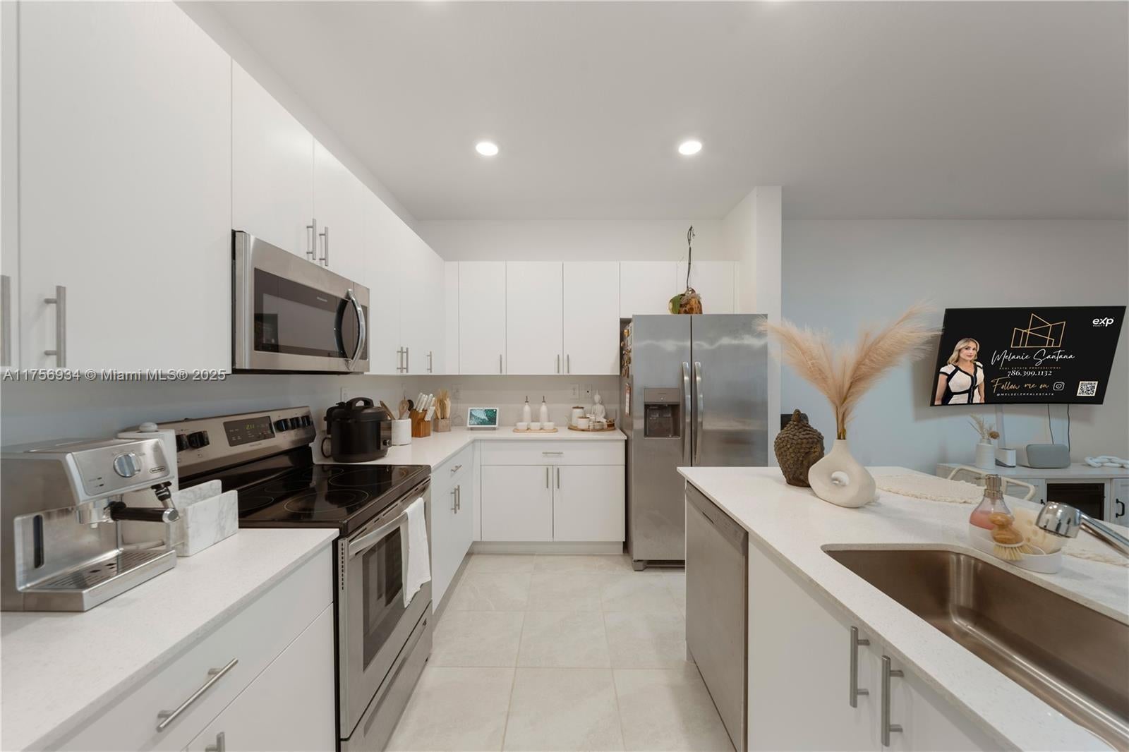 This meticulously maintained townhouse is a refined living experience within a tranquil community. Featuring three bedrooms and two and a half bathrooms. The residence provides ample space for comfortable living. The ground level has seamless tiled flooring, enhancing both durability and an aesthetic appeal. The kitchen showcases modern stainless-steel appliances. The second floor has carpeting, creating a warm inviting home. The home has impact windows and doors, ensuring security and energy efficiency. A convenient one-car garage, and driveway can accommodate up to three vehicles. Imagine enjoying peaceful mornings on your patio or going a short distance to relax at the community pool; all while still living near local shops and amenities.