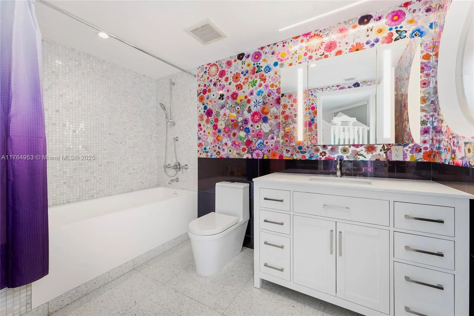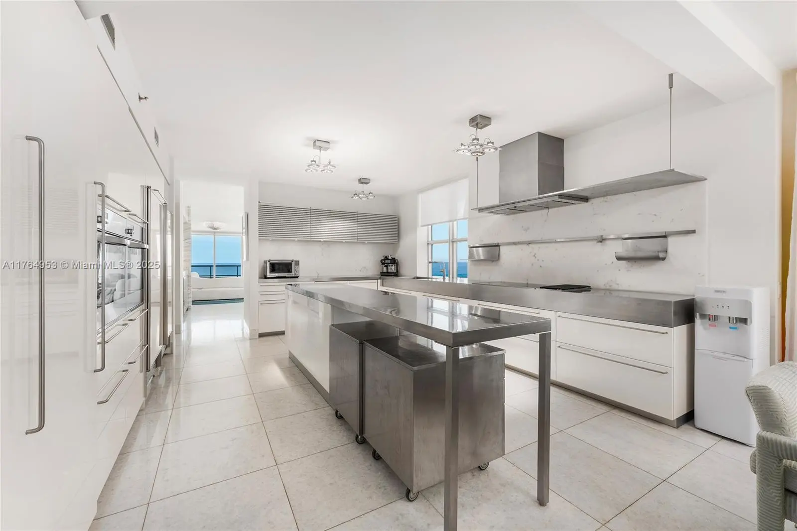 This exquisite 4,599 SF unit at Villa Di Mare, an exclusive oceanfront boutique building with only 12 private units, offers 5BR/6.5BA, marble floors, & a wraparound terrace w/stunning ocean, bay, & city views. Unit includes a large cabana w/full bath. Open-concept living & dining area is designed for luxurious oceanside living. Sleek Boffi kitchen boasts a stainless-steel center island, custom cabinetry, top-tier appliances, plus adjacent breakfast area & family room. Expansive oceanfront principal suite has direct terrace access, sunrise views, his/her walk-in closets - his/her ensuite baths. 4 additional bedrooms include ensuite baths - staff quarters, guest room & 2 large east-facing rooms offer bay/city views. Private beach access & prime location next to Bath Club, fine dining, shops.
