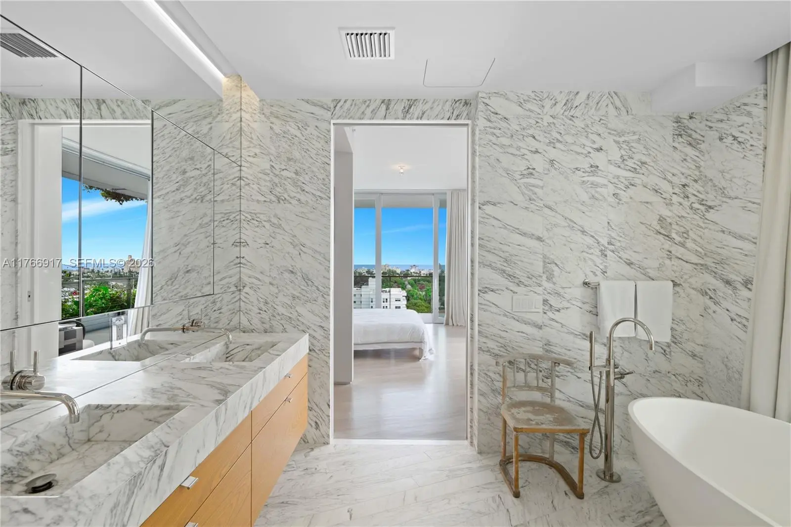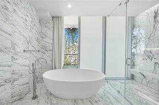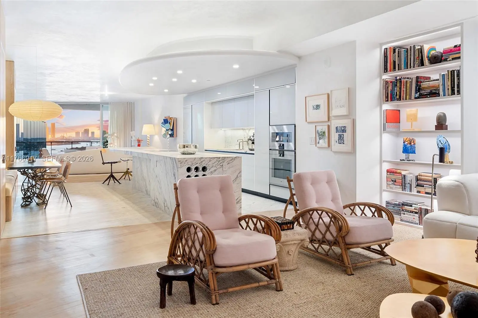 MID-CENTURY MINIMALIST INTERIORS BY AUSTIN HARRELSON WITH STUNNING SUNSET VIEWS OVER THE BAY & CITY SKYLINE FROM THIS SPRAWLING 5-BEDROOM RESIDENCE AT MONAD TERRACE BY AWARD-WINNING ARCHITECT JEAN NOUVEL! Flowthru 5 Bed + 5.5 Bath Residence in 3,936 SF wrapped in 1,474 SF Terraces. Private Foyer greets you to Oversized Great Room. Custom Wall-to-Wall Bookcases + 10 FT Ceilings in Elegant Venetian Plaster. Poliform Kitchen in White Calacatta Gold Marble w/Sculptural Cantilevered Marble Island & Wine Rack + Gaggenau Appliances. Custom Oak Breakfast Banquet. Primary Suite w/Bathroom in Calacatta Gold Marble & Floating Wood Vanity + Steam Shower & Ago Soaking Tub by Antonio Lupi. Laundry Room Doubles as Service Quarters. Diagonal Teakwood floors. Private Elevator with Direct Access to Garage.