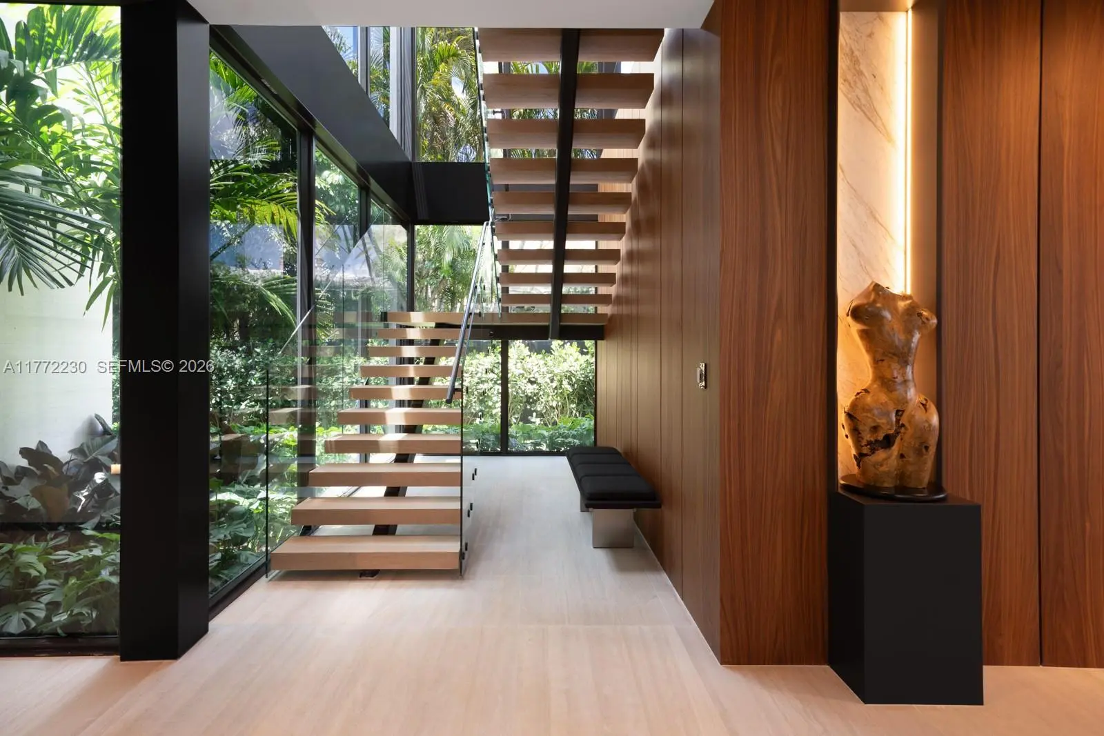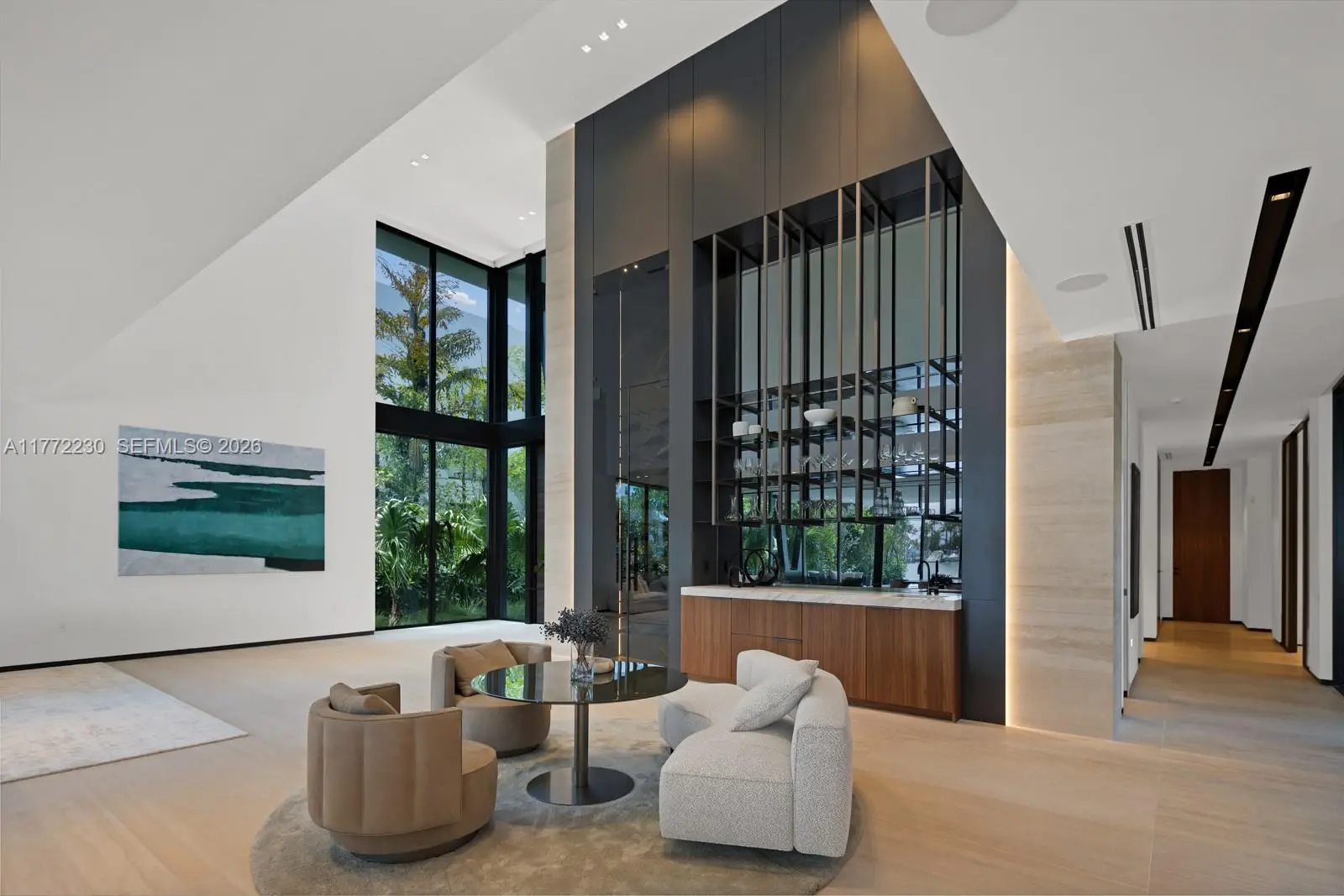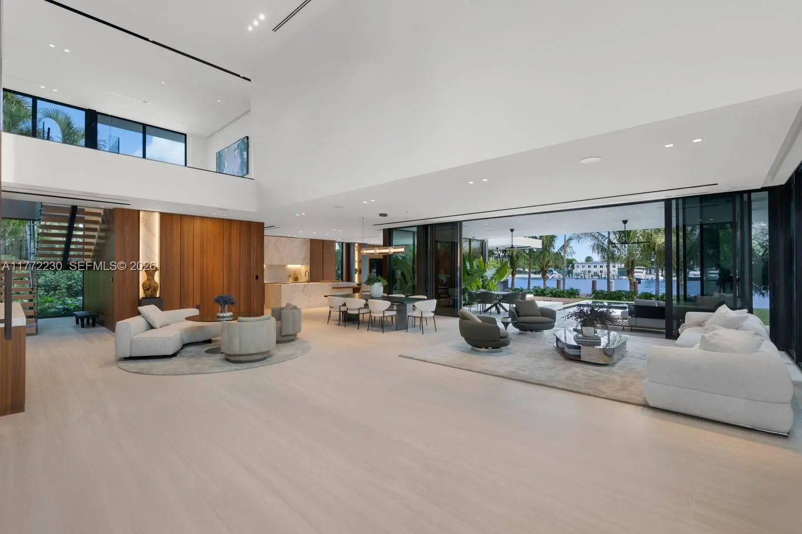 Masterfully designed by SDH_Studio, developed by Groupe Dayan & built by Treo Construction in 2025, this architectural masterpiece spans 7,000 sqft, with 7 beds and 7+ baths, of luxury. Minotti furnishings define its contemporary elegance, where sculpted architecture plays with light and shadow. Soaring ceilings, a striking floating staircase, and voluminous spaces create grandeur. A floor-to-ceiling wine cellar with integrated bar reinforces the home's scale. Stone accents elevate the interiors, notably in the kitchen, where a stunning island is paired with top-tier appliances. Custom millwork, walnut paneling, and bespoke lighting add warmth and refinement. Outside awaits a waterfront oasis with pool, outdoor kitchen, and 78 ft of waterfront with a new private dock.