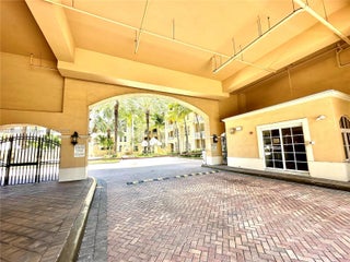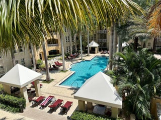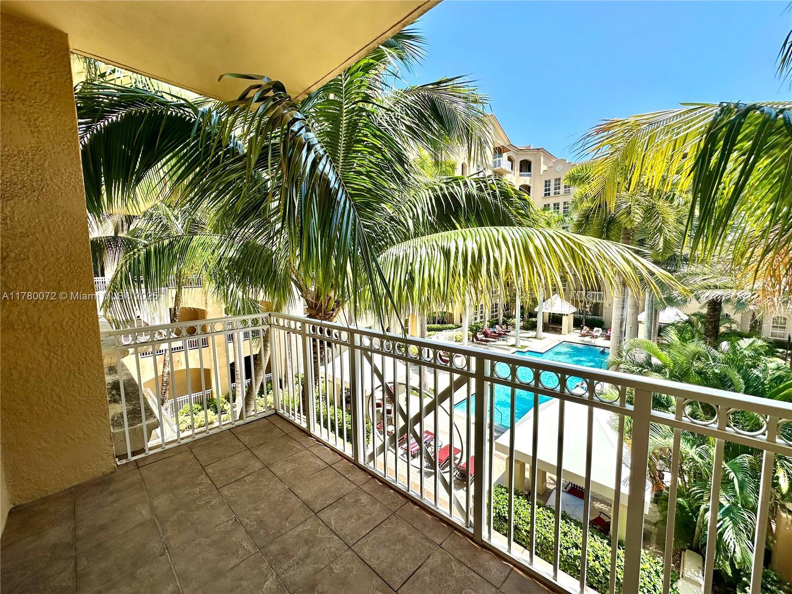 Lovely 1-bedroom 1-bathroom condo in the gated Mediterranean-style Alaqua, Aventura. Enjoy the relaxing views of the pool and the courtyard from your large balcony. The move-in ready unit features volume ceilings, new laminate floors throughout, impact windows and doors, washer/dryer, open kitchen with stainless steel appliances and granite counter tops, spacious bathroom with bathtub and shower. Ok to lease first year, pet friendly, 1 assigned parking. The peaceful and quiet manned-gated community offers great amenities: heated pool, clubroom, gym, business center, and a beautiful boardwalk on a serene waterway. Prime location close to parks, Aventura Mall, Gulfstream Park, great schools, medical centers, restaurants, entertainment, and more.