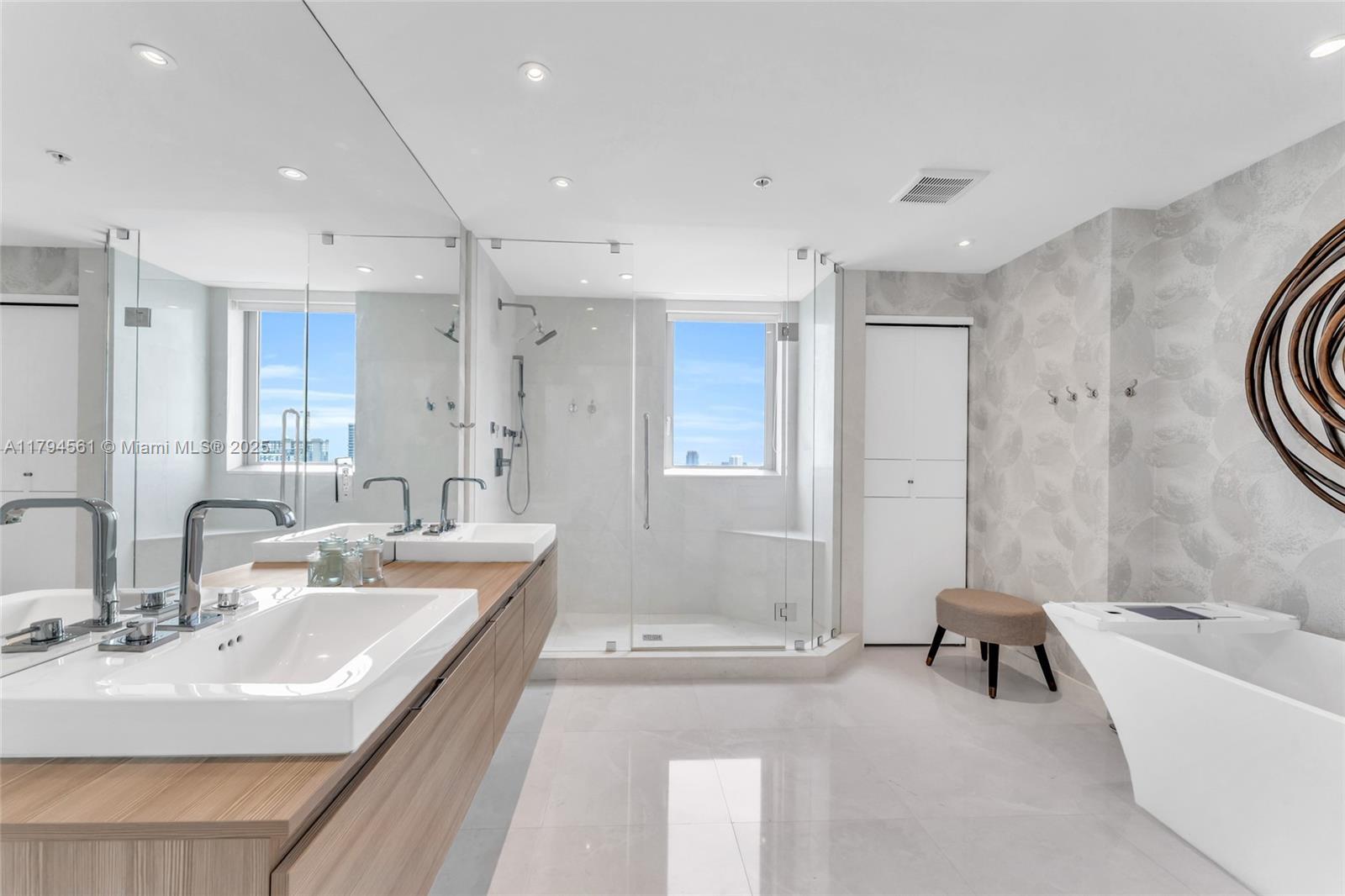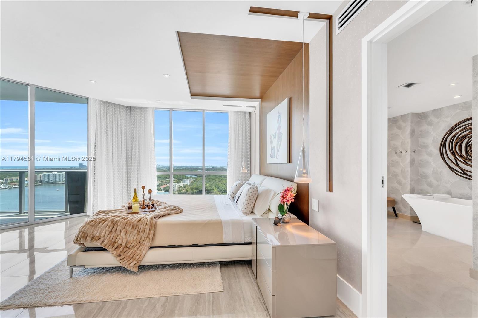 Mesmerizing water views from every room & a private, draping 22nd floor balcony define this special & exquisitely furnished 2BD + den, 3BA. 2017 security bldg. Professionally decorated with beautiful finishes, 5 built in TV’s, every inch has been thoughtfully upgraded, from ambient lighting to thick custom doors. The elegant European kitchen, high-end appliances, & built-out closets elevate the living experience. Enjoy 9.2' ceilings, two parking spaces with Tesla charger, & indulge in luxurious amenities: infinity-edge pool, spa, fitness center with classes & a private marina to rent or park a boat! Minutes away from Aventura Mall and fine dining.