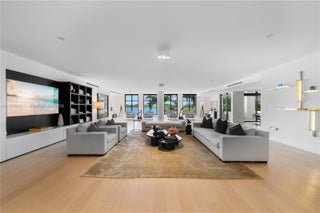 LUXURY IN MINIMALISM DESIGNED IN ELEGANT HUES OF GRAY & TAUPES IN THIS PALATIAL CORNER RESIDENCE WITH BAY VIEWS ON FISHER ISLAND’S PALAZZO DEL SOL! Oversized 7,630 SF of Pristine Interiors in an Armani Casa Vibe. Nearly 3,000 SF of Deep Wraparound Terraces. 5 Beds + Study & 6.5 Baths Maintained like New. 2 Private Elevators. Bayfront Great Room w/Formal Dining & Lounging Areas. Media Room w/Sculptural Oak Louvers. Boffi Kitchen w/stone Eat-in Island + Gaggenau Appliances. Temp-Controlled Wine Room. Family Room w/Massive Terrace. Primary Suite w/Ocean Terrace w/Office Clad in Oak Millwork + 2 Walk-in Closets. Primary Bath in Bookmatched Carrara & Boffi Soaking Tub. 2 Parking + 2 Golf Cart Spaces + Storage. Award-Winning Building by Kobi Karp w/White Glove Services & 5-Star Amenities.