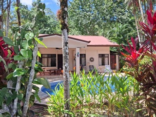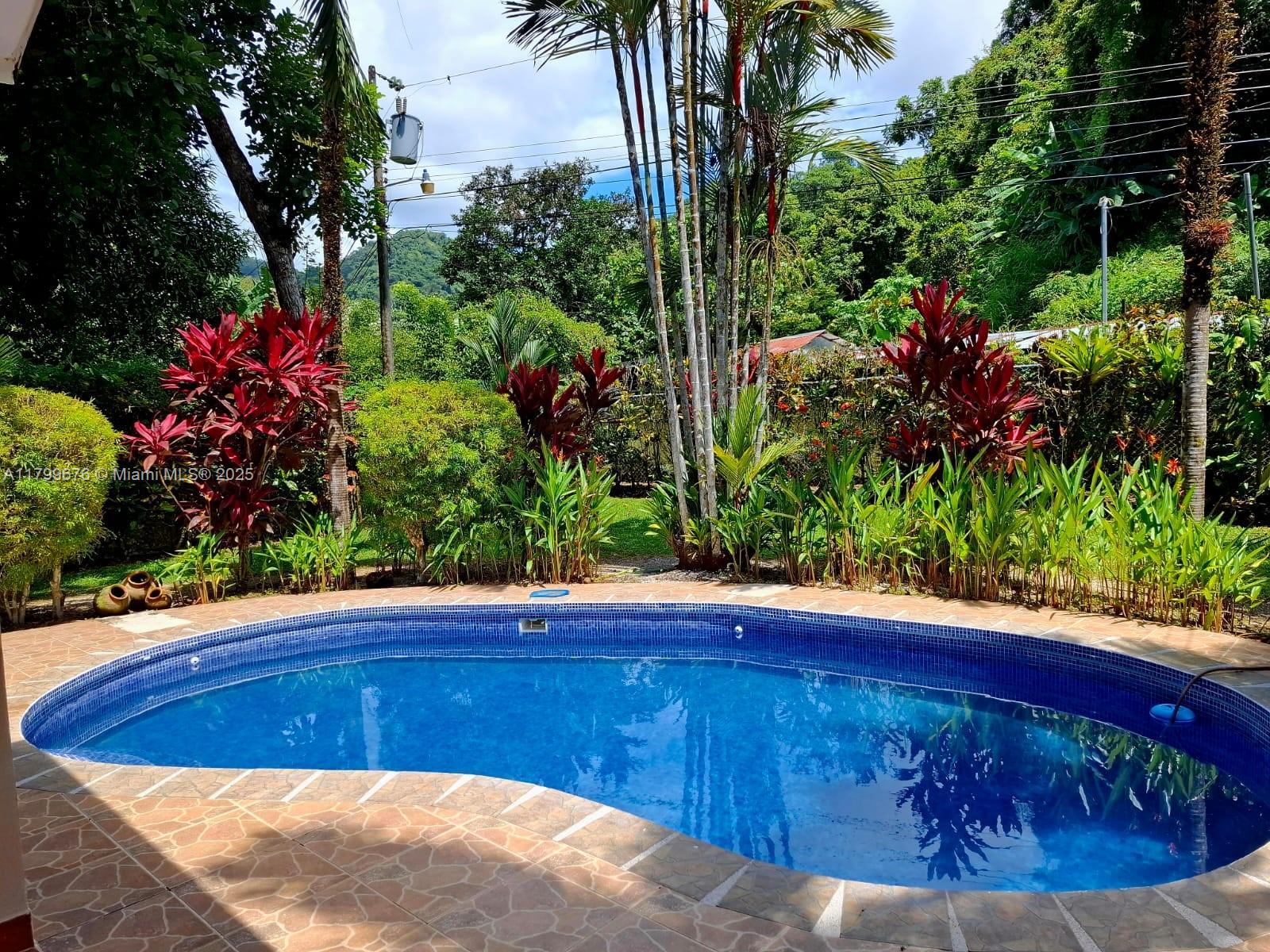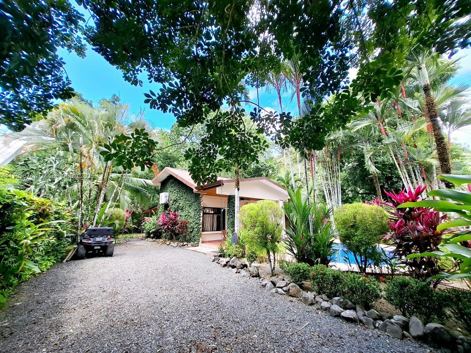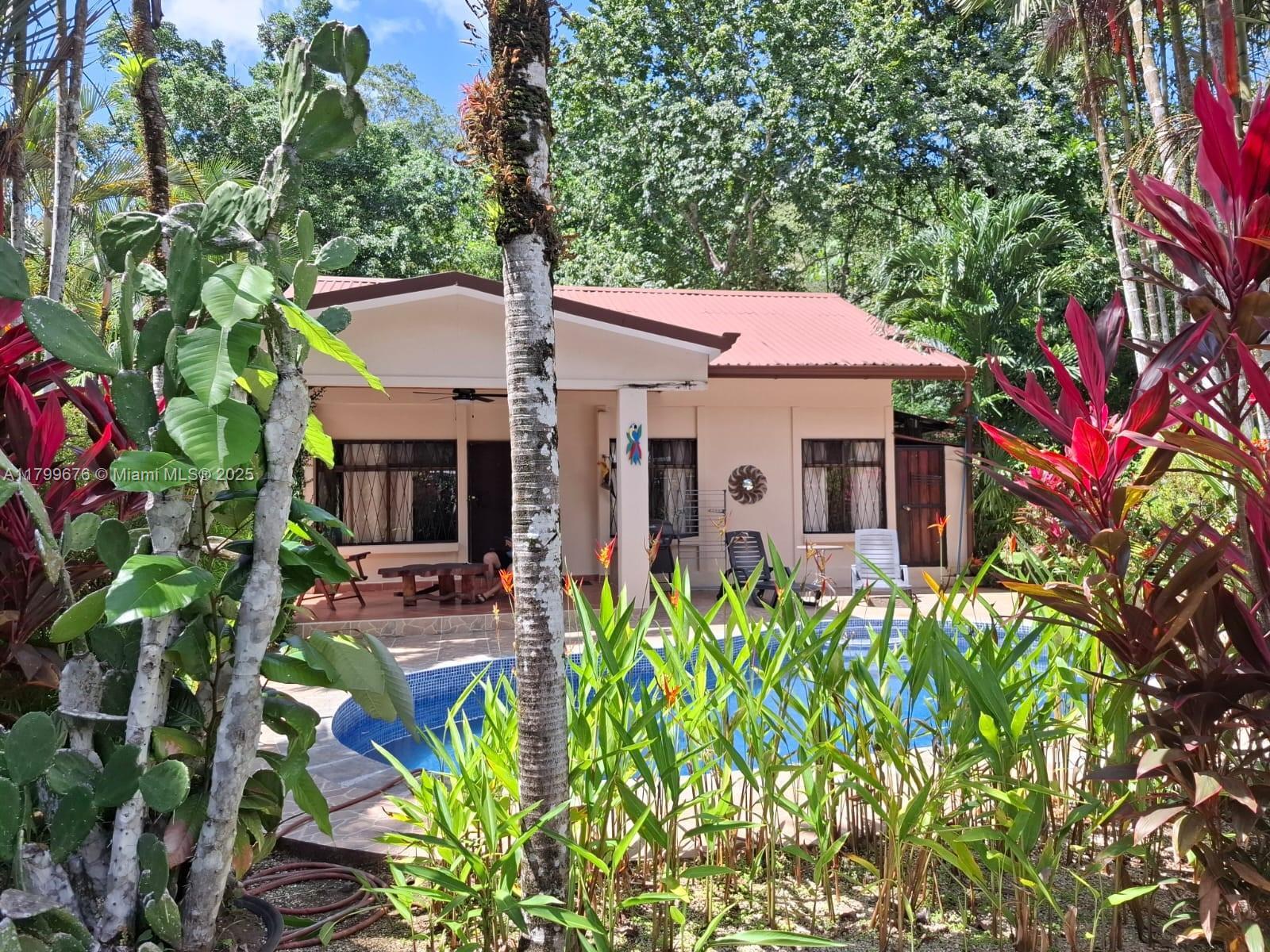 Only 5 minutes from Herradura Beach, Jacó’s vibrant surf scene, and Los Sueños Marina, this 2-bedroom, 2-bathroom home sits on a spacious 871.41 m² (9,378 sq ft) lot surrounded by lush tropical vegetation. Wake up to birdsong and the gentle sound of a nearby stream in your private garden paradise. The home features a bright open layout, cozy loft, updated kitchen, and a serene master suite with ensuite bath. Enjoy your own private pool, ample space for outdoor dining, lounging, or connecting with nature. With no HOA fees and room for 4+ vehicles, it's the perfect spot for full-time living, vacation getaways, or high-demand rentals in one of Costa Rica’s most desirable coastal areas.