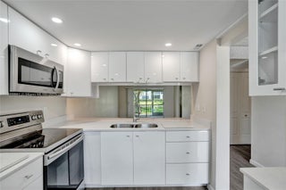 Back on the Market!! Beautifully updated 2 bed, 2 bath first-floor condo in Bahama Village at Wynmoor! Featuring impact windows (2019) and stylish laminate flooring throughout. The remodeled kitchen (2022) boasts stainless steel appliances, modern cabinetry, and quartz countertops with generous counter space—perfect for everyday living and entertaining. Enjoy a newer A/C (2020) and water heater (2018) for year-round efficiency. The split-bedroom layout provides privacy. Step outside to a serene garden-view screened patio - Steps to the Village pool. Located in Wynmoor’s vibrant 55+ community with resort-style amenities—pools, golf, tennis, fitness center, theater, and more. This unit is perfectly located near the guarded entry gate and main amenities. Truly a must-see!