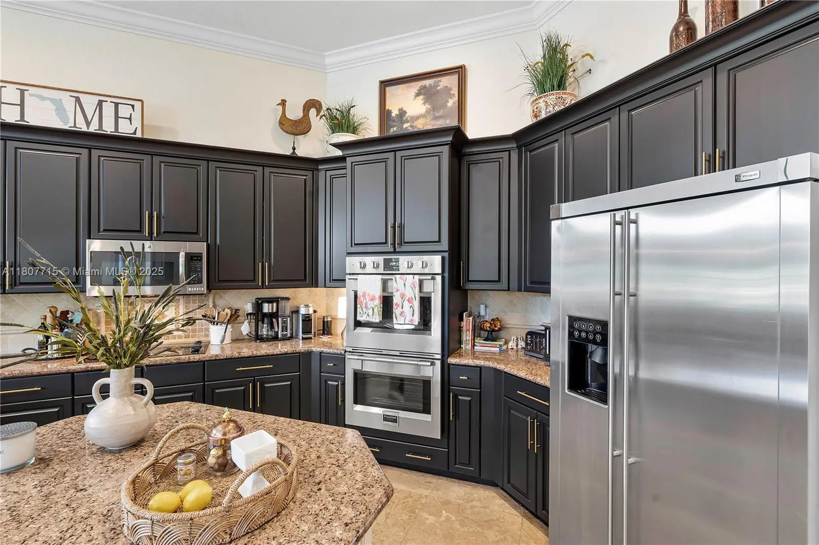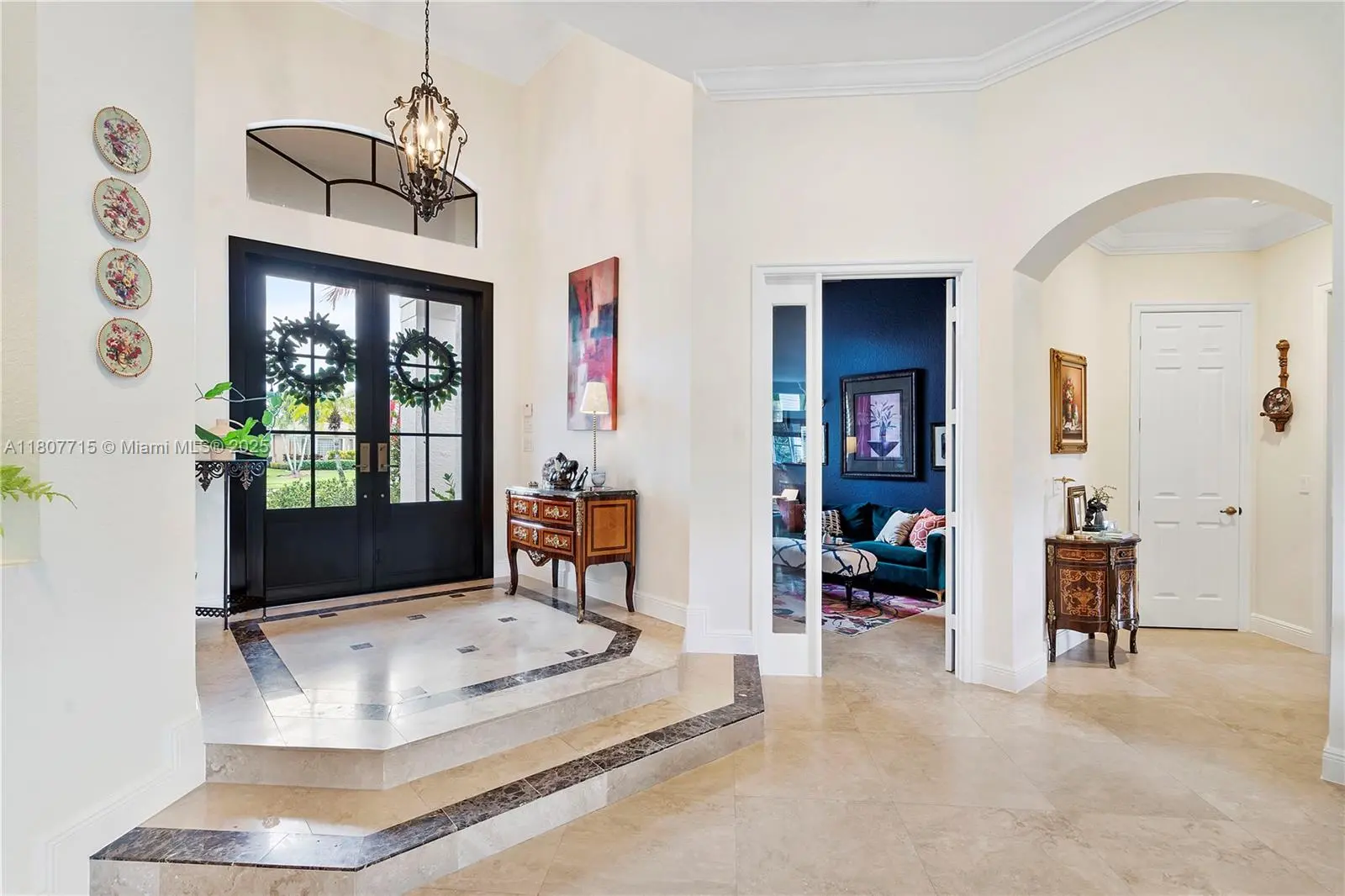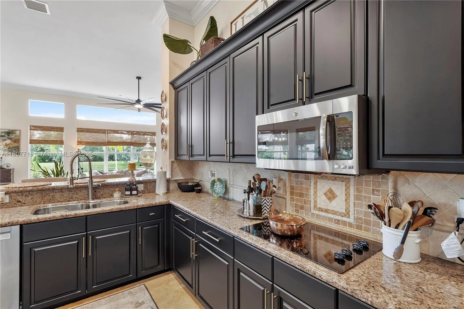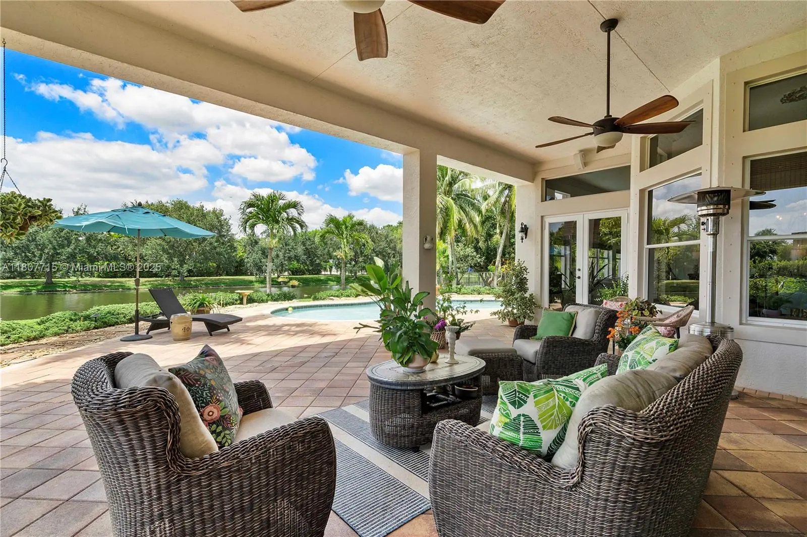4 bedroom PLUS den (or 5th bed), 4 bath, 3 car garage, in exclusive gated community of Riverstone in Davie. Marble floors in all the main living areas. Newly installed hurricane impact double doors enter into the formal living room with pool & lake view behind. Dining room with adjacent butler's pantry. Wet bar complete with wine cooler, large kitchen with Italian wall-mounted double ovens, & walk-in pantry. Family room with wainscoting accent wall. Residential rooms include cherry hardwood floors. Owner's suite with 2 walk-in closets, separate shower & tub, his/hers vanity areas, & separate water room. Each bedroom with walk-in-closet. Den is perfect for library or home office. French doors to access covered lanai. Pool with access to cabana bath. Alarm connection. Oversized lot.