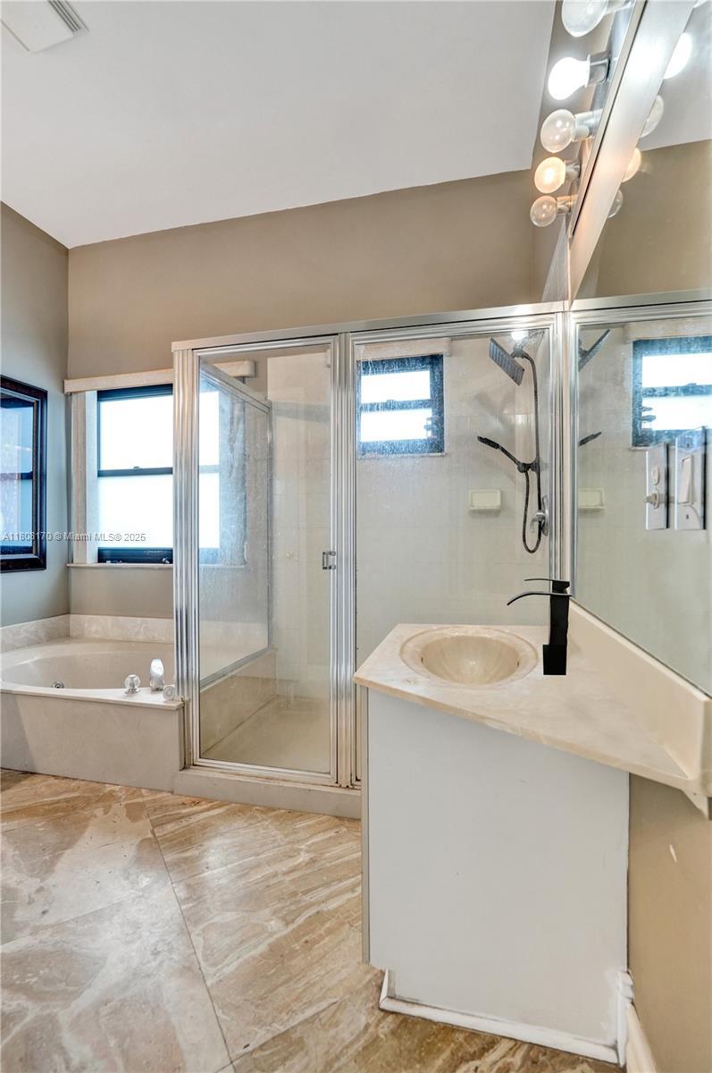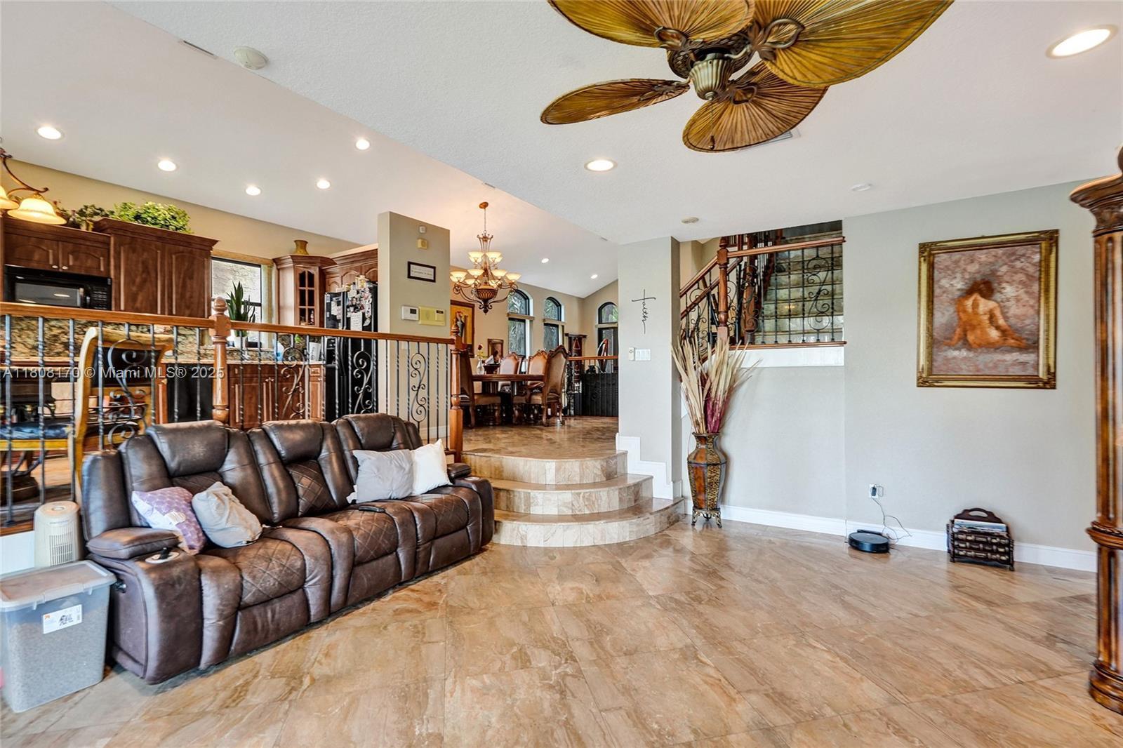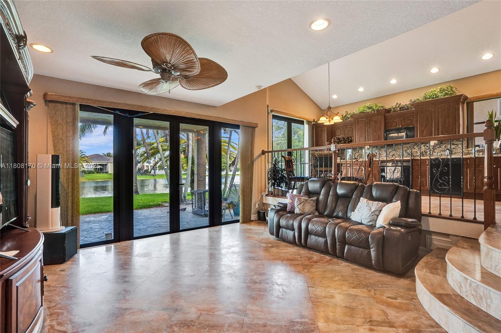 Must see!! This 4-bedroom, 3-bath split-level home situated on an oversized lakefront lot offers luxury and comfort in a resort-style community. Featuring elegant Breccia Oniciatta marble floors, impact windows, and a newer A/C units as well as new plumbing.... this home is both stylish and efficient! Enjoy a spacious yard overlooking a serene lake—perfect for relaxing or entertaining. One bedroom and full bath are conveniently located on the first floor. The 2-car garage adds extra storage. The community boasts a custom pool with waterfall and jacuzzi, tennis and pickleball courts, a top-tier gym, party room, and on-site management. Ideally located near highways, shopping and restaurants. Great value in an amazing community!