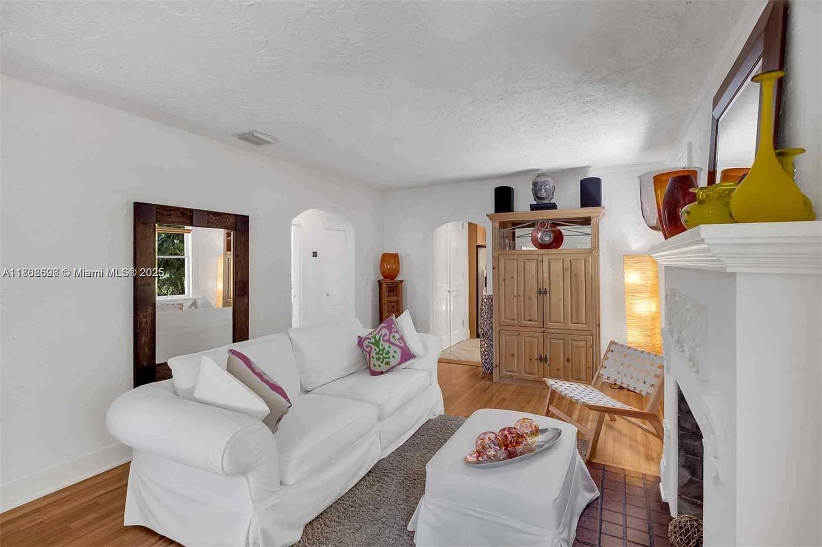 Exquisite 1926 Mediterranean Revival in the heart of Miami Shores—fully restored, turnkey, and rich with character. Perfect lock-and-leave home for buyers seeking charm, convenience, and low-maintenance living. This 2-bedroom 1-bath gem offers original wood floors, custom millwork, Pecky cypress screened in porch, a wood-burning fireplace, and a modern kitchen with stainless steel appliances. Enjoy a lush, private garden, smart home tech, updated systems, and a 400 sq. ft. A/C-equipped garage—ideal for office, gym, or studio. Walk to cafés, shops & parks. Now $50K below asking price—a rare opportunity and exceptional value.