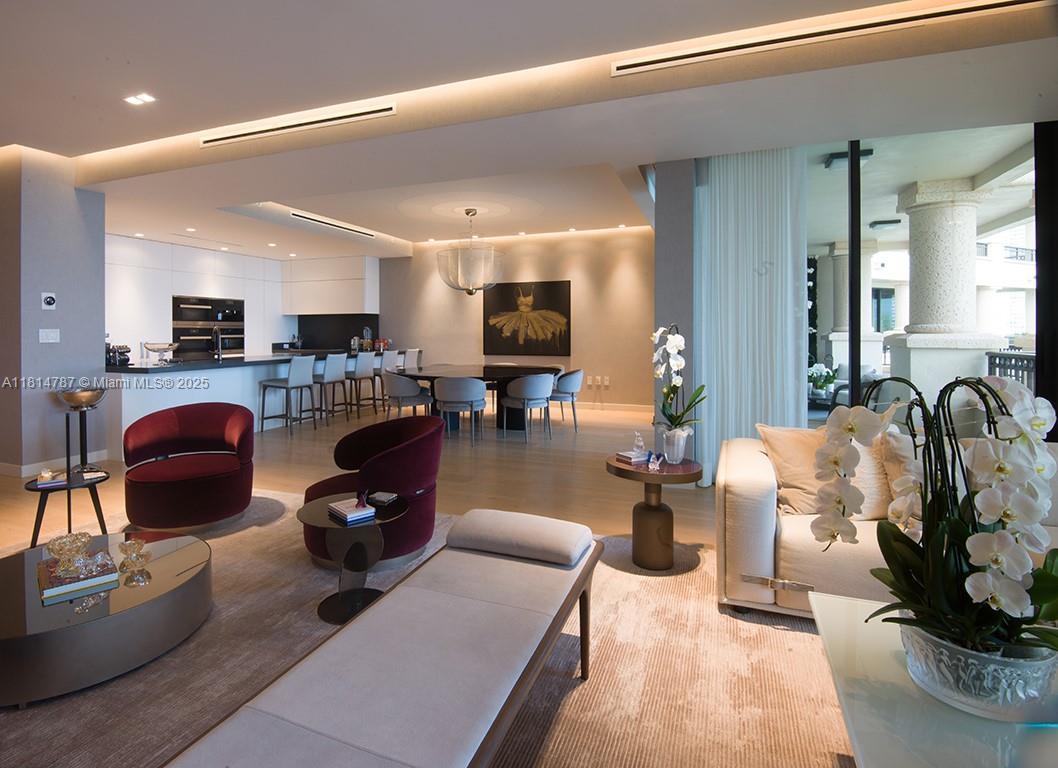 Experience luxury living at Palazzo Della Luna on Fisher Island. This upgraded residence features custom cabinetry and Ornare closets, designer lighting, premium blackout window treatments, and a sleek built-in drop-down ceiling TV. Enjoy a custom wine cellar, elegant finishes, sunrise & sunset balconies among other elegant features. Offered with a fully upgraded private poolside cabana, two side-by-side garage spaces, and two golf carts makes this a special and real exclusive rare combination. Residents here enjoy white-glove service: concierge, valet, private pool with service, on-site restaurant, coffee lounge, theater, fitness center, plus. Fisher Island offers unmatched exclusivity with private beach, golf, marina, and dining—accessible only by ferry or private vessel. Welcome Home.