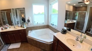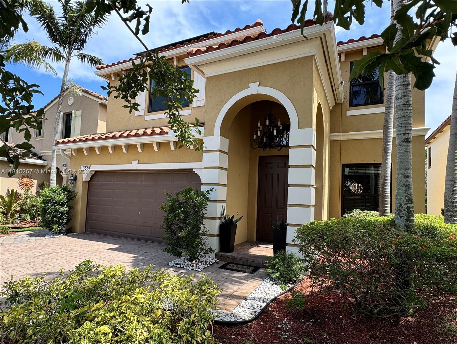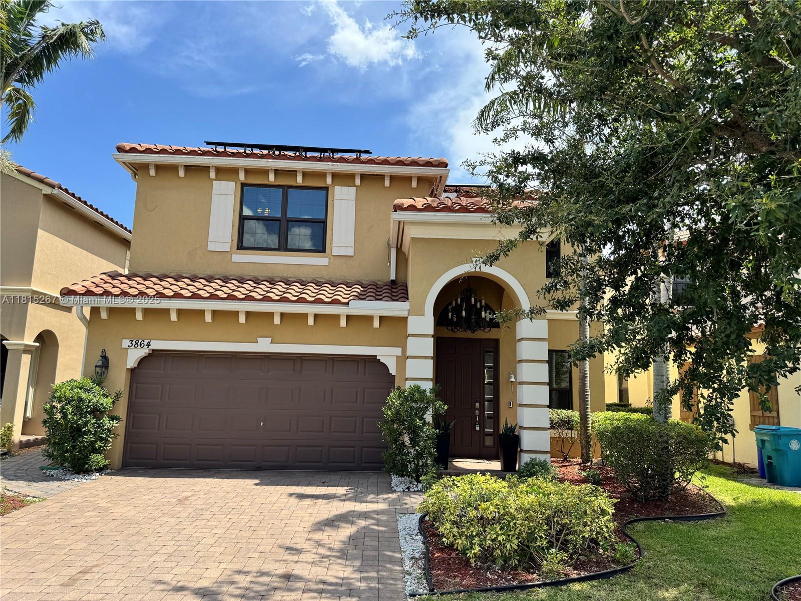 Now featuring brand-new solar panels for energy savings! This beautifully upgraded two-story home offers a private heated saltwater pool and spa, ideal for entertaining. Inside, enjoy luxury finishes: high ceilings, tile floors, impact windows, and a gourmet kitchen. The first-floor guest suite has a walk-in closet and direct pool access. Upstairs are four more bedrooms—three with walk-in closets—including a spacious primary suite. Located near schools, shopping, and dining with a low HOA and no CDD. Style, savings, and resort-style living in one perfect package!