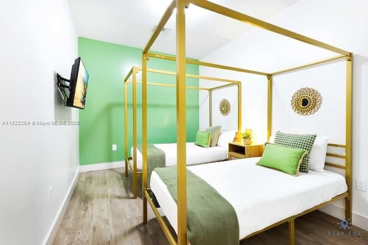 Modern and beautiful unit 1 Bedroom + 1 Den + 1 Full Bath. The Den has 2 beds and TV!! Living- Dining room with 1 sofa bed. Fully furnished and equipped at Costa Hollywood Resort in Hollywood Beach! Modern kitchen, balcony with ocean and intracoastal view. Amazing rooftop with bar, pool, jacuzzi, lounge areas and spectacular views of the city, Intracoastal and beach. No Rental Restrictions! Association fee includes Cable TV, Internet, water, gym, Electric, facilities, amenities. Unit management by Stay Sol. Just steps away from the Hollywood Boardwalk with many restaurants, bakery, shops, sports. Don't miss the opportunity to stay in paradise!!