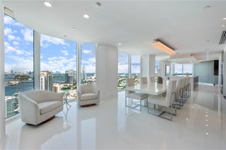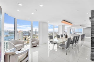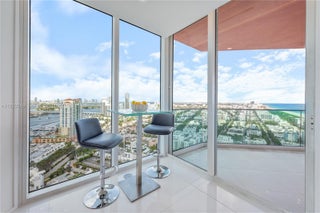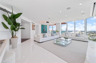 South Beach Sky Mansion Commanding the entire private 34th wing this 4,723 SF (5352 TA) sky residence offers privacy, size, and panoramic 270° views. Floor-to-ceiling glass frames the Ocean, Bay, downtown skyline, and Park, w 4 infinity balconies. Step from your private elevators into artfully reimagined interiors: an open-concept living space flows into a Bulthaup chef’s kitchen w waterfall island, custom cabinetry, and premium appliances. Features 2 oversized primary suites, designer baths, and no shared walls—a rarity. Enjoy full access to Portofino's $60M renovation, incl a soaring new lobby, resort pools, spa, tennis and gym. Experience peace, prestige, and privacy from a South of Fifth location just steps from the beach and worldclass dining. Unit newly furnished and renovated. Floors recently polished and lightened.