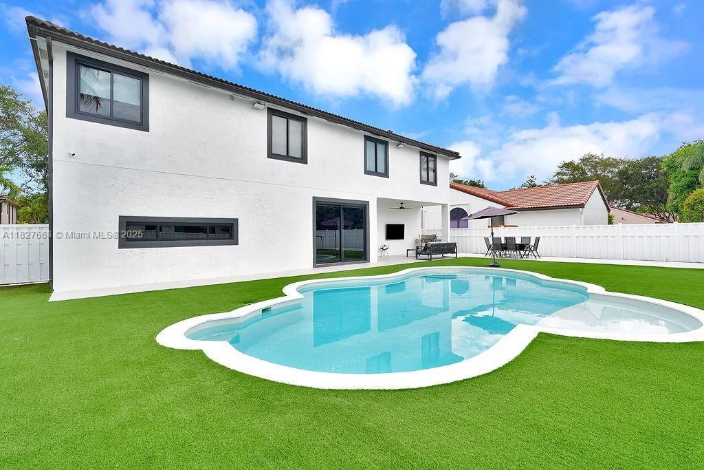 RARE OPPORTUNITY! THE ULTRA MODERN RESIDENCE IS SITUATED IN COOPER CITY’S 24-HOUR GATED COMMUNITY, EMBASSY LAKES. WITH OVER 3,000 SF OF LIVING SPACE ON AN 8,261 SF LOT, THIS HOME FEATURES AN OPEN-CONCEPT LAYOUT, MODERN KITCHEN WITH ITALIAN CABINETRY, AN OVERSIZED ISLAND, FORMAL LIVING AND DINING ROOM, AND A STRIKING FLOATING GLASS STAIRCASE. THE PRIMARY SUITE BOASTS A FREE-STANDING TUB, DUAL SINKS, AND TWO CUSTOM CLOSETS. ADDITIONAL HIGHLIGHTS INCLUDE AN A LOFT THAT CAN BE CONVERTED INTO A 5TH BEDROOM , CABANA BATH , DESIGNER LIGHT FIXTURES, FLOOR-TO-CEILING IMPACT WINDOWS AND DOORS, MODERN BATHROOMS , 2 CAR GARAGE , AND A CIRCULAR DRIVEWAY. ENJOY OUTDOOR LIVING WITH A RENOVATED HEATED POOL, COVERED LANAI, FENCED YARD WITH ASTROTURF, AND PROXIMITY TO A+ SCHOOLS AND MAJOR HIGHWAYS.
