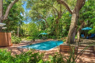Enchanting Coconut Grove estate offers prestige, security & a coveted address in The Moorings. 24-hr Guard w/ entry by resident consent only. 2 Lots totaling 25,241 SF at 16' Elevation, private resident Marina w/ bay access & 3 Parks: Marina, Waterfront & Children's. Walk/Bike to private schools, dining, shops & more. Classic Florida home to a family for 54yrs. Custom-built Mid-Century, hi-ceiling, Open-Concept Living Rm (Fireplace) & Dining Rm is spanned by a Patio seamlessly integrating Pool & large lush yard. Spacious Primary Bedrm w/ His/Hers Walk-in Closets & Baths. 3 En Suite Bedrms, Eat-in Kitchen w/ Stainless counters, Pantry, Storage, Laundry, Workshop & 2-Car Garage. BUILD anew or restore. The opportunity to live in the premier location of The Moorings is rare!